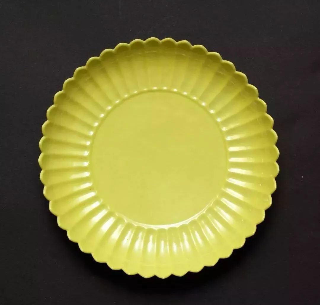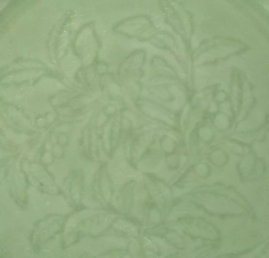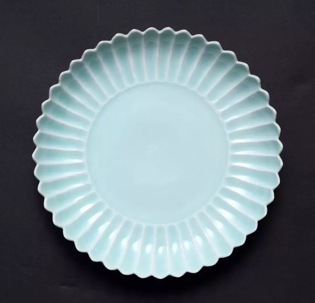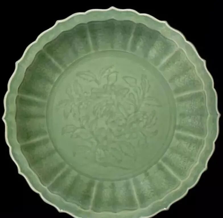 明永乐 龙泉青釉葵口折沿荔枝花卉纹大盘