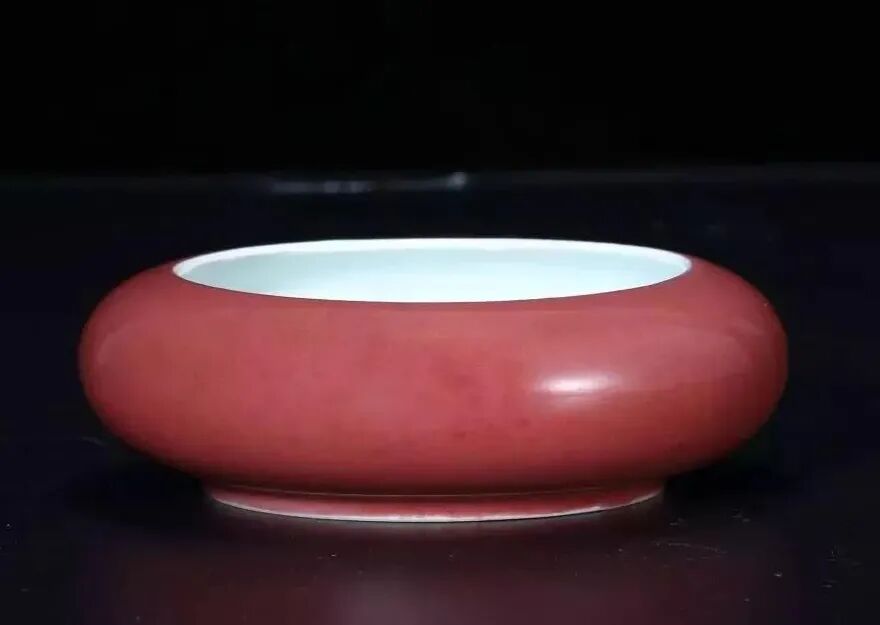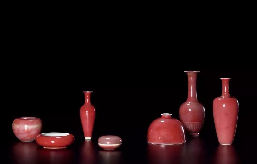 早期单色釉瓷器成规模的拍卖较少,其中较重要的是香港佳士得[微博]1996年举办的徐展堂“静观堂”旧藏专拍,曾上拍过19件单色釉瓷器——宣德瓷器3件,康雍乾瓷器16件,一套8件有修补的清康熙豇豆红釉文房用品以717万港币成交,创1996年以前颜色釉瓷器成交价格之最。