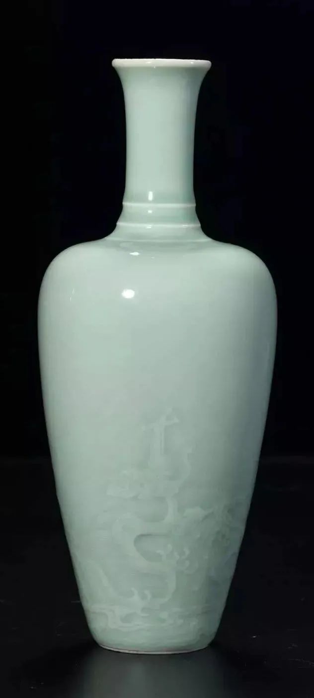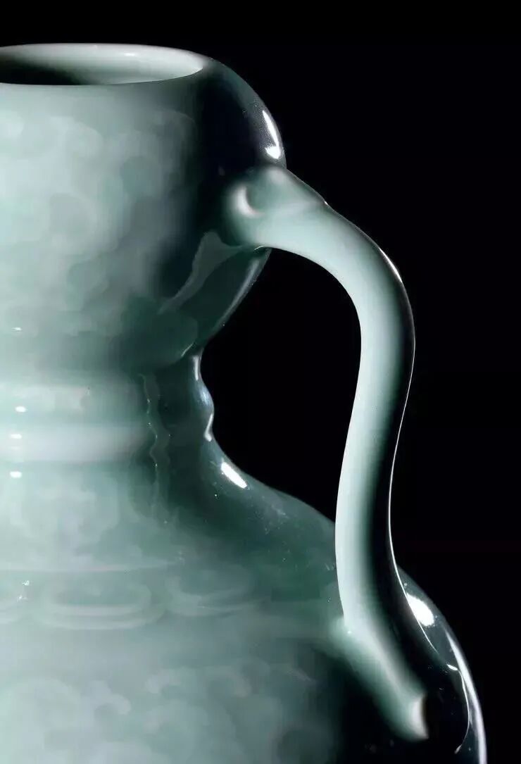 到2006年香港佳士得秋拍推出“玉剪霓裳——张宗宪御制瓷珍藏”专场,清乾隆炉钧孔雀毛釉如意耳扁瓶以2090万元成交,清乾隆粉青釉浅雕夔龙纹如意耳葫芦瓶以1556万元拍出,再次带动单色釉瓷器市场价格上扬。2007年北京保利春拍、北京长风秋拍、北京翰海秋拍都有单色釉专场推出,这以后单色釉瓷器也成为瓷器拍场大项,时不时出现亮眼的拍品,可比起青花、彩瓷接连爆出的亿元天价,单色釉瓷器的价格并不显眼。