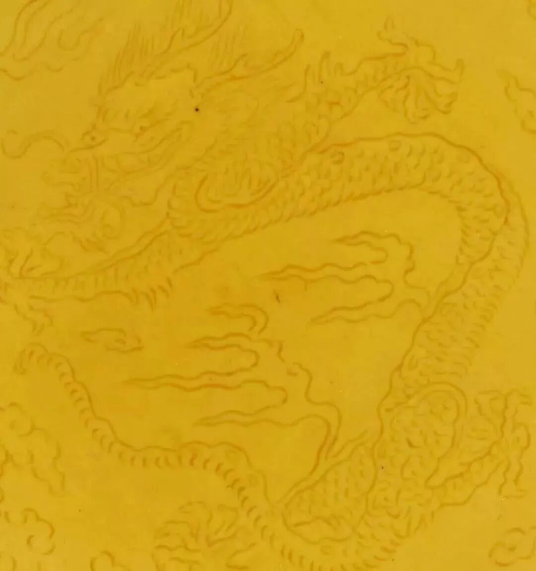 清嘉庆 黄釉刻苍龙教子云龙纹天球瓶