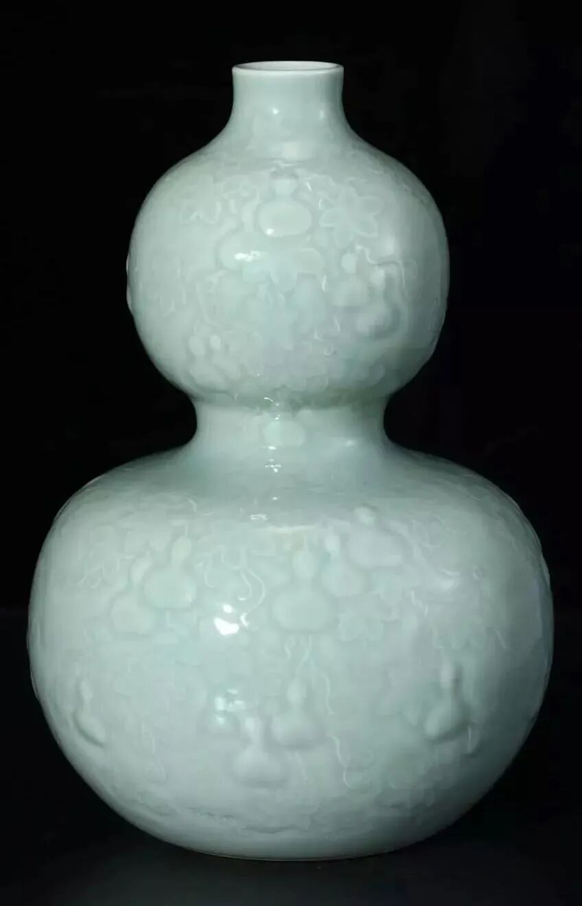 清乾隆 青釉浮雕葫芦纹葫芦瓶
