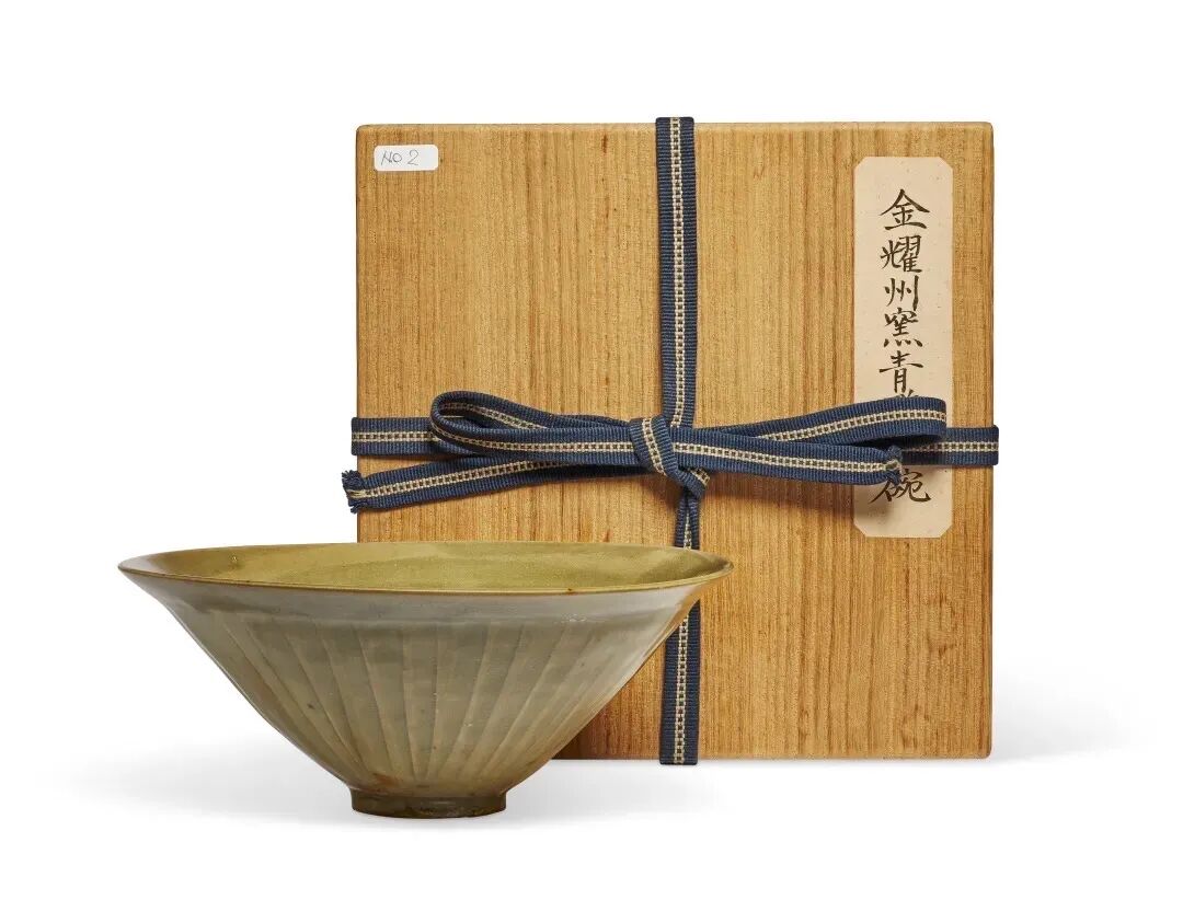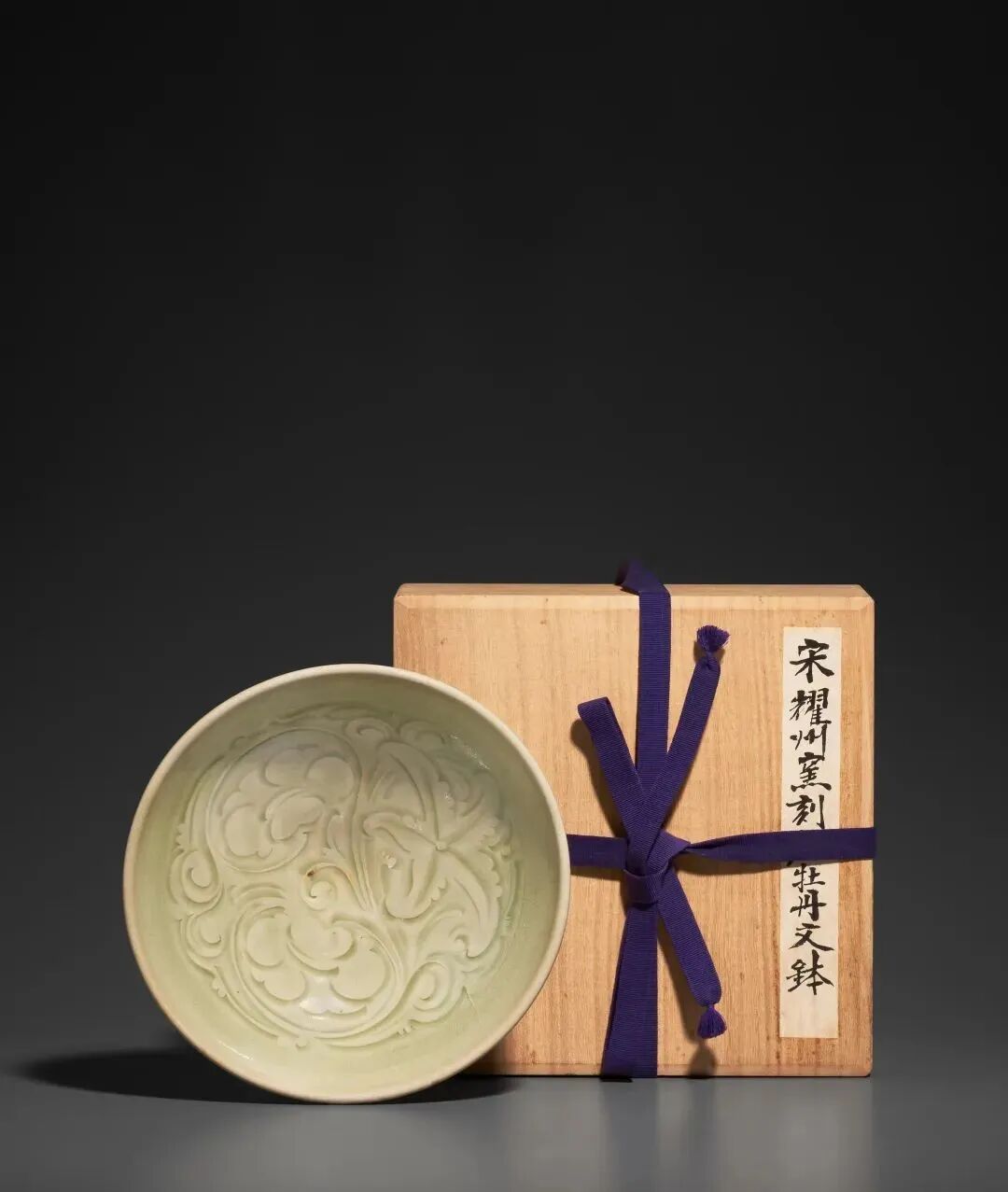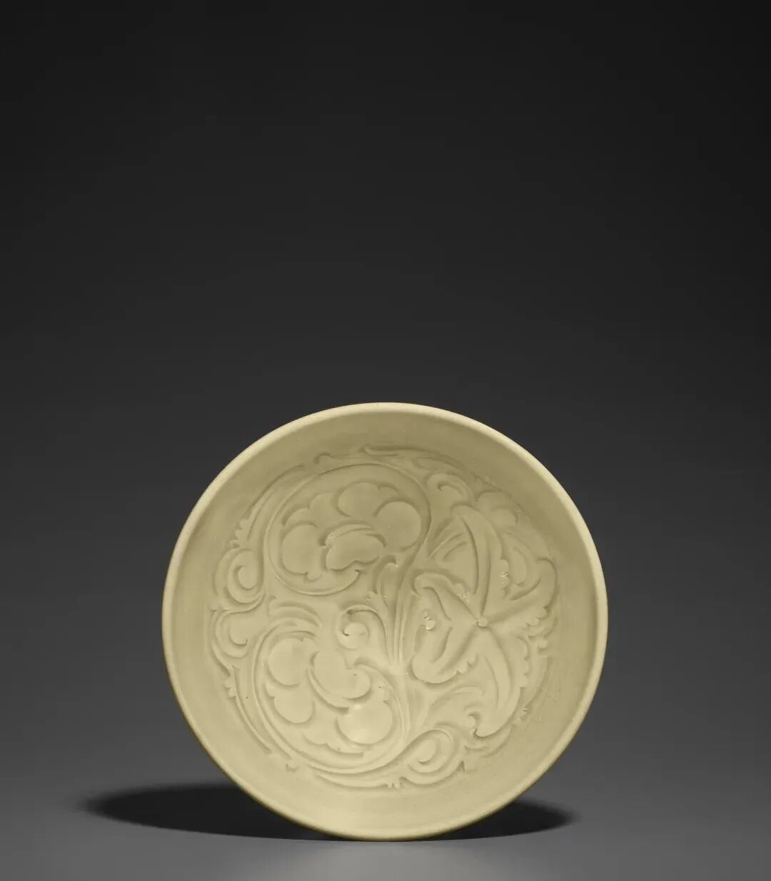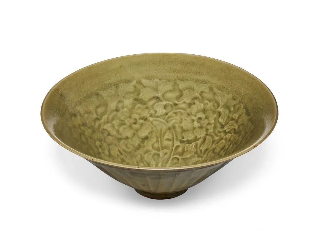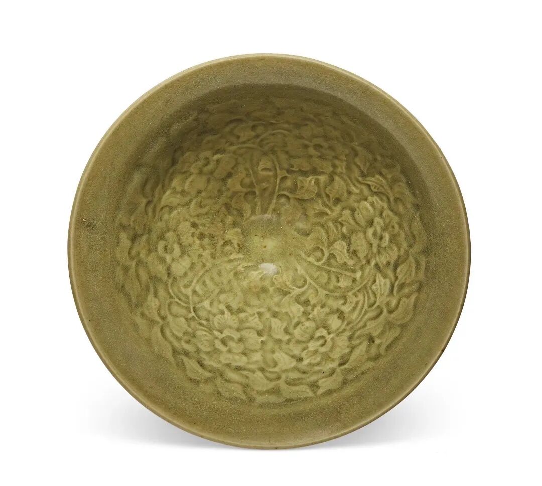 北宋 耀州窑青釉模印牡丹纹笠式碗