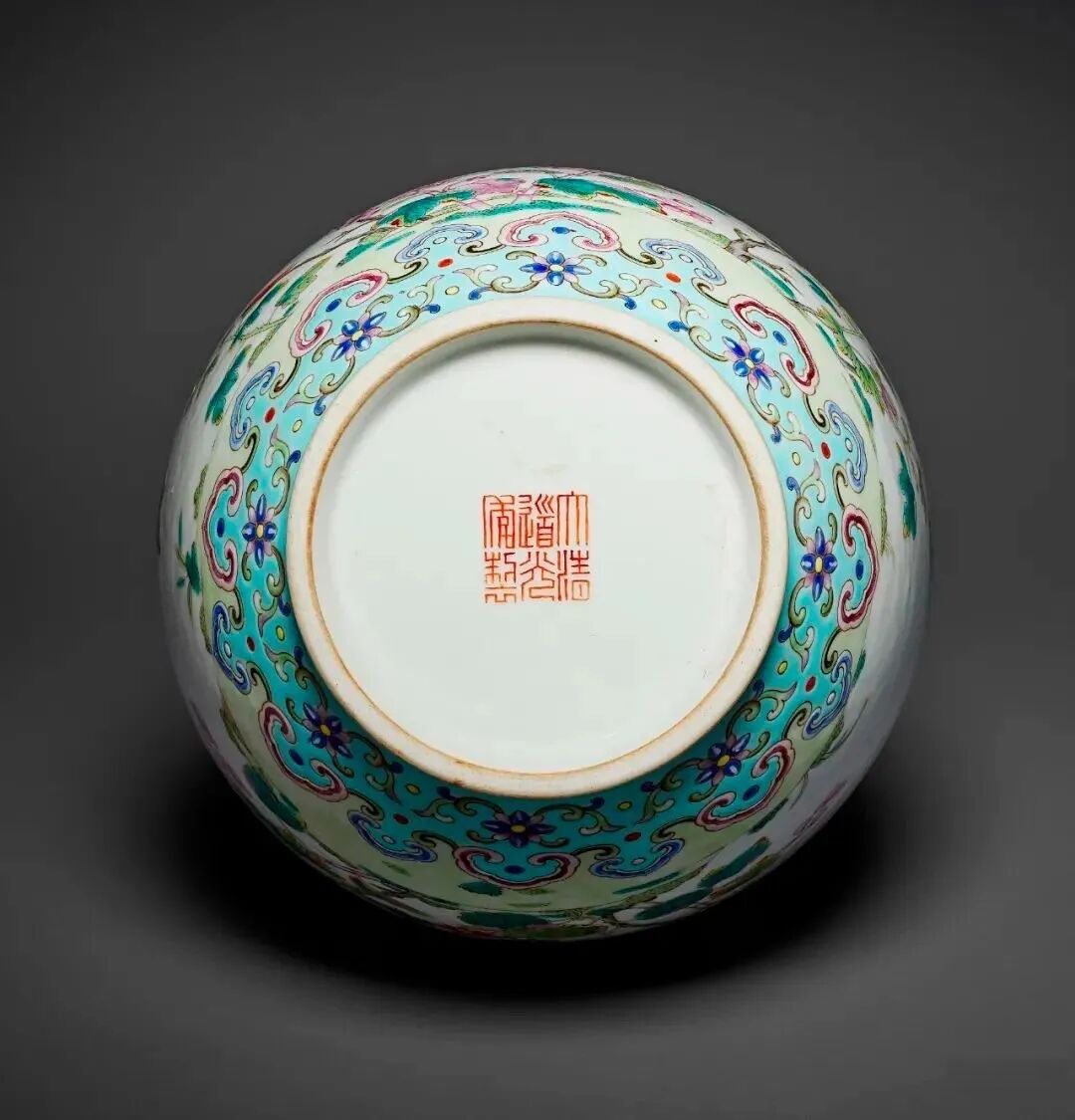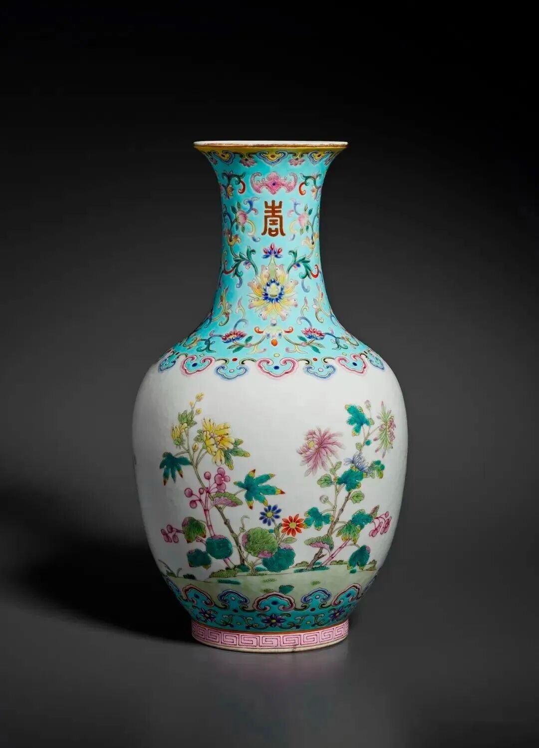 粉彩秋季花卉纹瓶矾红六字篆书款