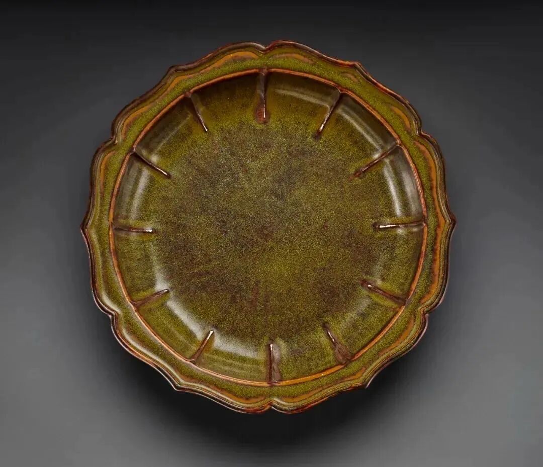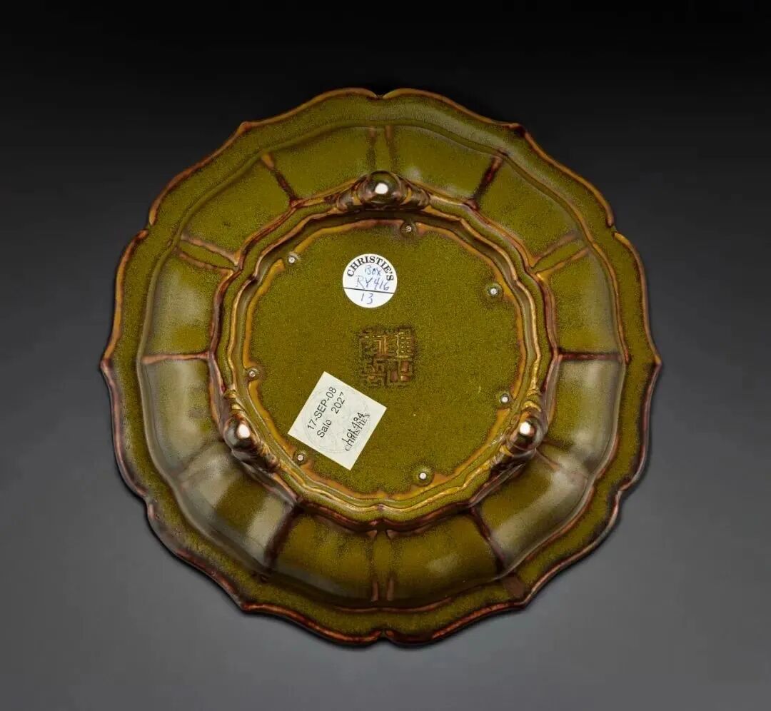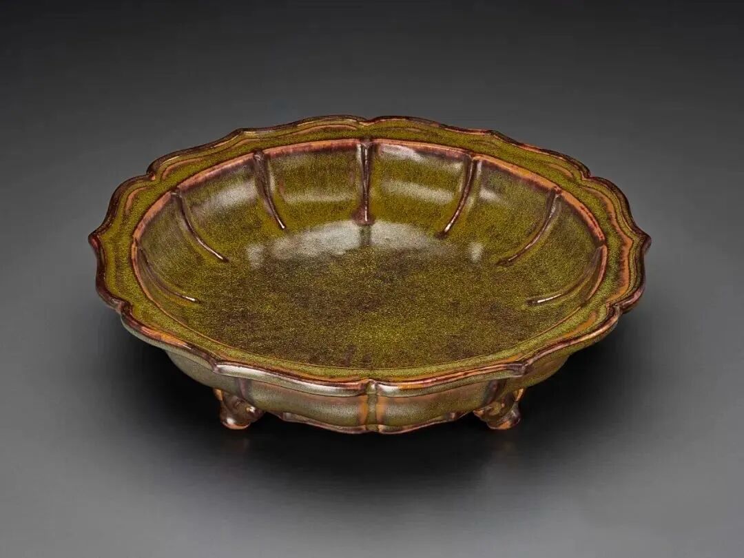鳝鱼黄釉菱口三足水仙盆四字篆书款
