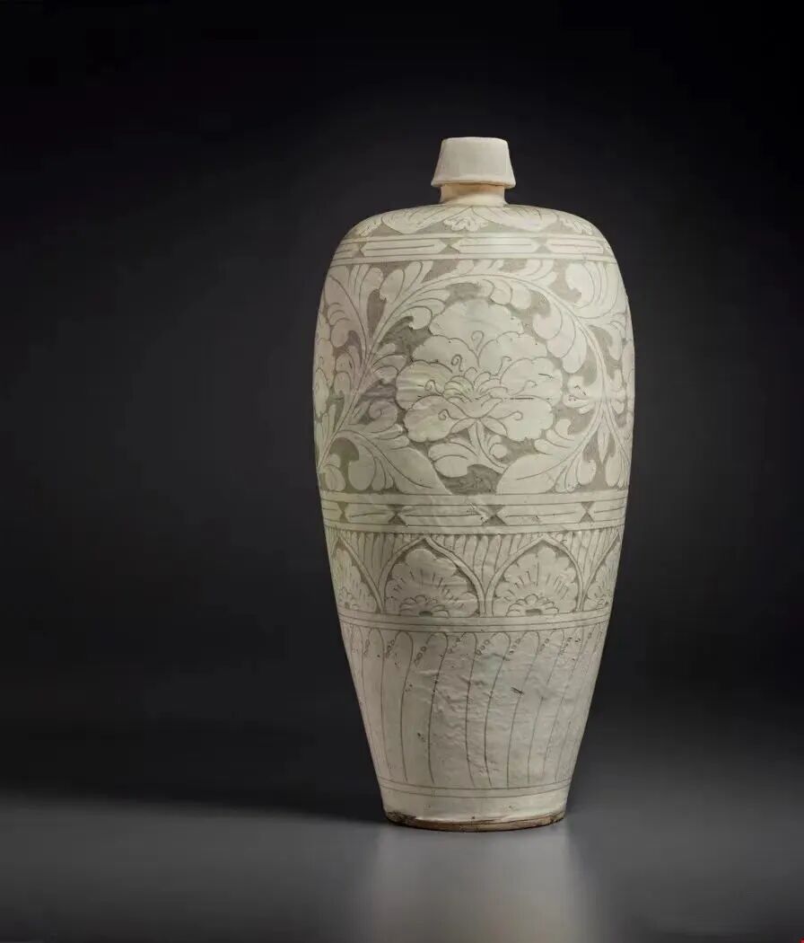 磁州窑白剔花缠枝莲纹梅瓶