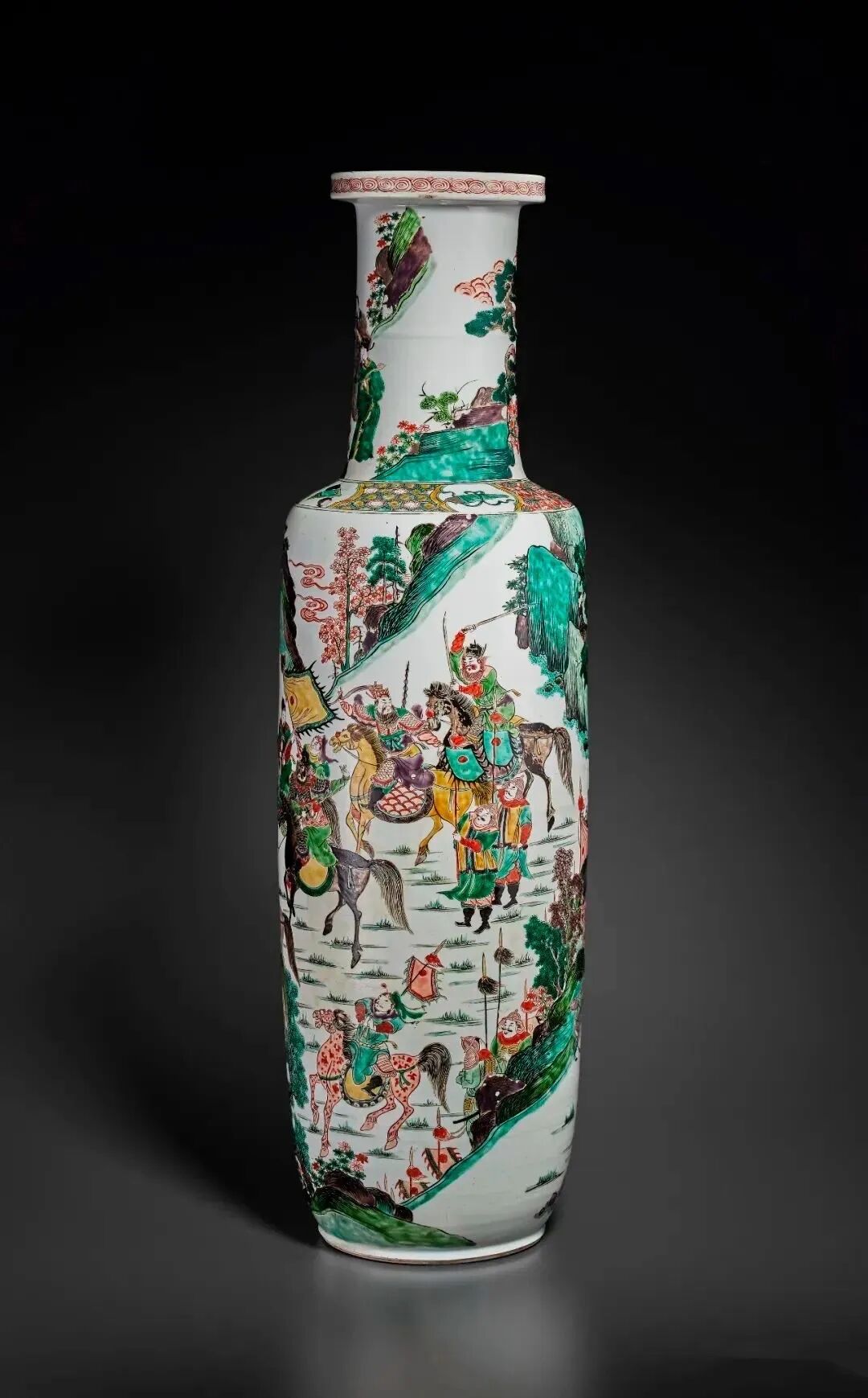 五彩逐鹿中原图大棒槌瓶