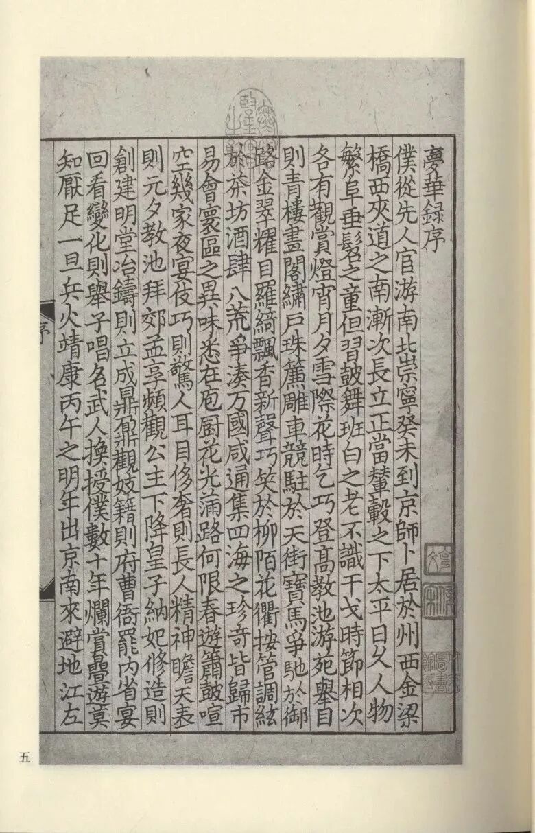 正因如此,《东京梦华录》版本历代均有刊刻,以至在浩如烟海的古籍之中,绵延不绝,繁衍为庞大系统,最为常见的主要是十卷本系统,即《秘册汇函》本、《津逮秘书》本、《学津讨源》本、《四库全书》本、《三怡堂丛书》本、《丛书集成初编》本等。此外尚有《说郛》、《唐宋丛书别史》的一卷本。