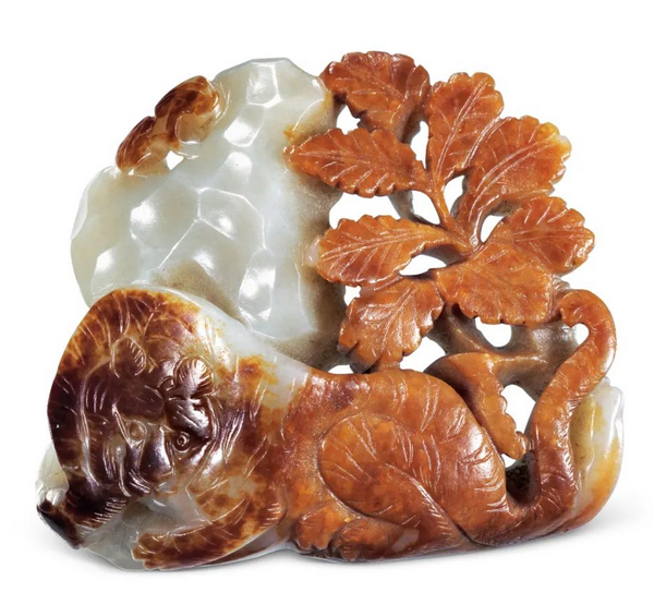 “秋山玉”之定名,源于故宫博物院玉器专家杨伯达先生。1983年,杨伯达先生在大量接触故宫传世古玉后,在《女真族‘春水’、‘秋山’玉器考》一文中,将这些充满着淳朴山林野趣和浓郁北国情调的小型玉雕分别定名为“春水玉”“秋山玉”,春水玉是鹘(即海东青)攫天鹅纹饰内容的玉器;秋山玉是以山林、虎、鹿为题材的玉雕作品。“秋山”一词,原指辽帝“秋捺钵”,射猎熊、虎、鹿之山,后来就将入山秋狝称为“秋山”。《辽史》中的“秋捺钵”:“曰伏虎岭。七月中旬自纳凉处起牙帐,入山射鹿及虎。”虽然“秋捺钵”始于辽契丹,但当时这种山林虎鹿的题材较多反映在绘画之中,玉器较少。金代,女真人将这一题材典章制度化,金熙宗(1135-1148)于皇统三年(1143)主谕尚书省:“将循契丹故事,四时游猎,春水秋山,冬夏刺钵。”“秋山”与“春水”一道,成为这一时期最流行的艺术题材之一。也就是在这一时期,“秋山玉”开始大量出现。秋山玉,表现辽金皇帝到北方山林中射猎虎鹿熊等动物景象的玉雕作品。以山林、虎、鹿、熊为主要图案内容,辅之以山石、灵芝和柞树,表现出人与兽共处于山林之间、相安无事的场景,其中最为突出者,当属国家博物馆藏“景宗降虎玉摆件”。此件典型秋山玉摆件,题材取自《辽史》中“景宗降虎”的记载:“尝有虎踞林,伤害居民畜牧,景宗领数骑猎焉,虎伏草际,战栗不敢仰视。”景宗端坐洞石旁,头戴冠帽,目视前方,虎则毫无凶狠之态,安详地伏卧在一旁。秋山玉中的虎,多为伏卧状,像一只大猫,姿态温顺,有的器物上一只,有的两只,也有子母虎。虎头有的阴刻“王”字,虎鼻与眉相连,身饰双阴线虎皮纹,两层排列,尾较长,上饰“二”字形短阴线。鹿或站立、或卧伏、或奔跑,身体肥硕,腿细长,有不驯和雄健之姿。鹿纹有的也用带有黄、金黄、枣红色或褐色玉皮的和田子玉进行巧雕,有一鹿、雌雄两鹿,也有的雕成群鹿。秋山玉多采用巧作技法,保留玉皮的黄色,来表现出秋天和虎、鹿、熊金黄色的皮毛,将深秋北方草原野兽驰骋、山高林阔的山林美景充分展现。在纹饰上,写实与抽象相结合,采用深层、多层立体透雕进行雕刻,立体感非常强,生动鲜活。通过管钻、剔挖、翻卷、减地等技法,将玉之边缘修饰为锯齿状或者波浪纹,增加器物的美感,将独特的北方草原捺钵文化,浓缩在玉器之上。秋山玉以景写情,场景恬淡自然,人与动物气氛和谐,让人感受到秋天山林美景的无穷魅力,也体现出当时的工匠对大自然的热爱和对美好生活的憧憬。元代,春水玉、秋山玉种类和数量都非常多,且非常精美。明清两代,秋山玉之创作失去了生活基础,原有的山林野趣逐渐消逝,其艺术生命也逐渐走向消亡。秋入云山,物情潇洒。不妨在某一日晴秋上午,随便走走,去感受秋山玉中所蕴含的山林之趣。参考文献:
