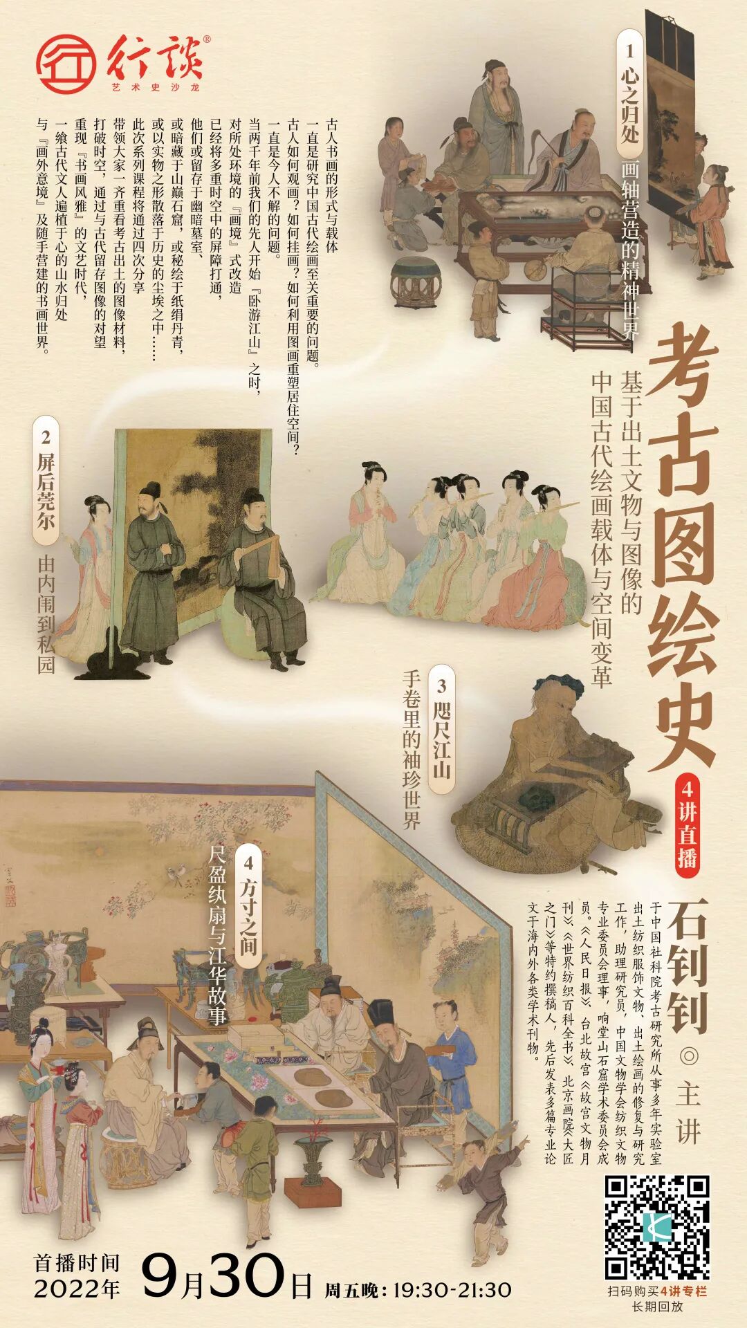 此次系列课程将通过四次分享带领大家一齐重看考古出土的图像材料,打破时空,通过与古代留存图像的对望重现“书画风雅”的文艺时代,一飨古代文人遍植于心的山水归处与“画外意境”及随手营建的书画世界。