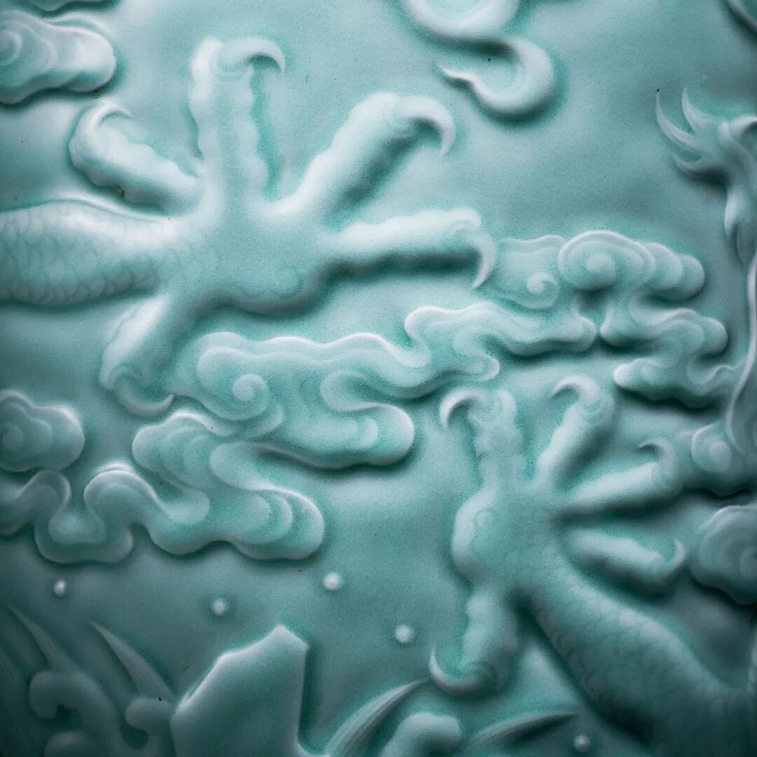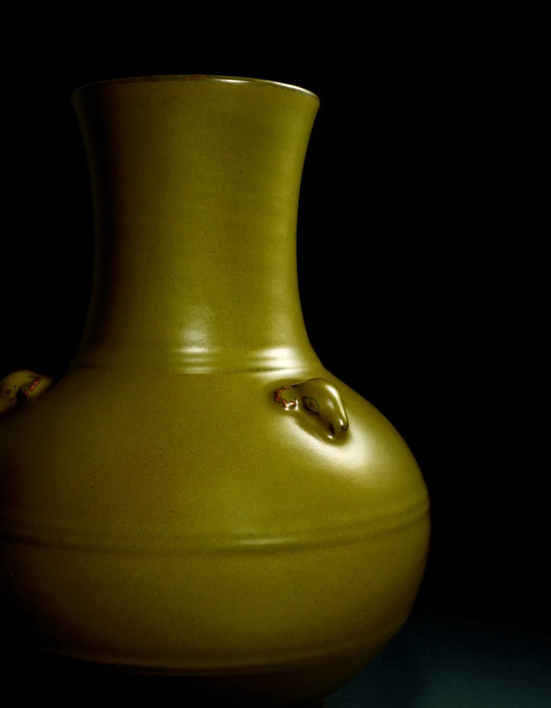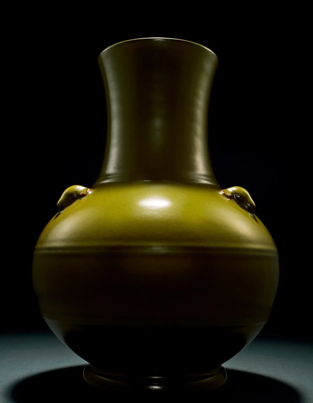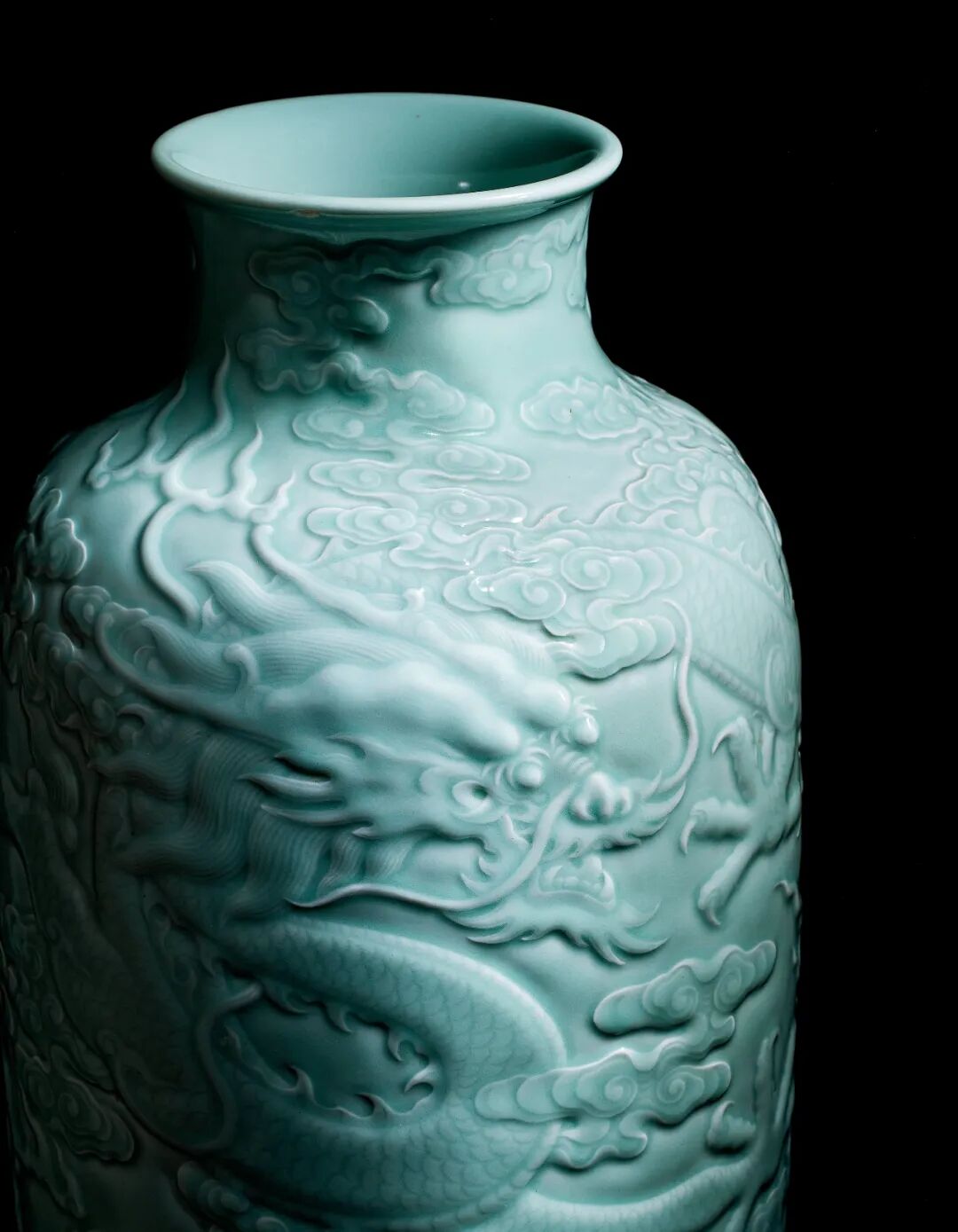 松石绿地洋彩螭龙纹如意耳花口瓶
