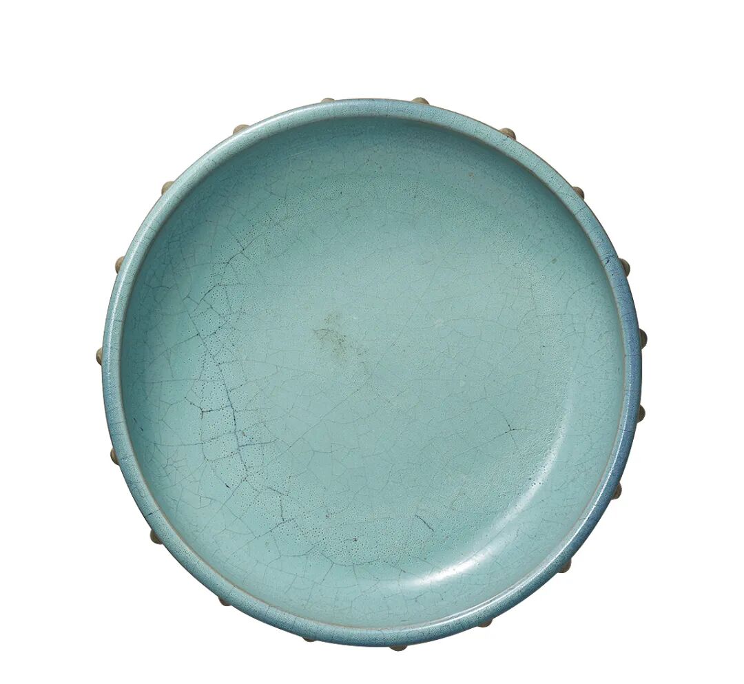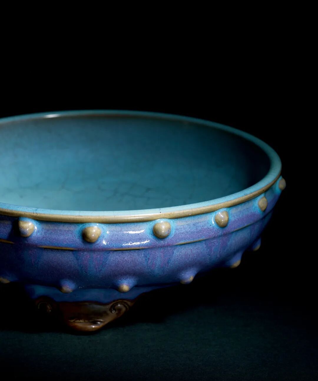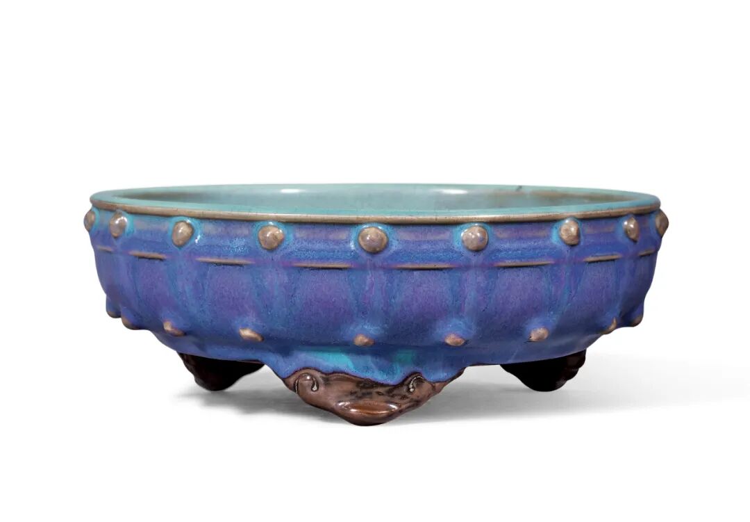 仿钧窑内天蓝外玫瑰紫釉乳钉式水仙盆