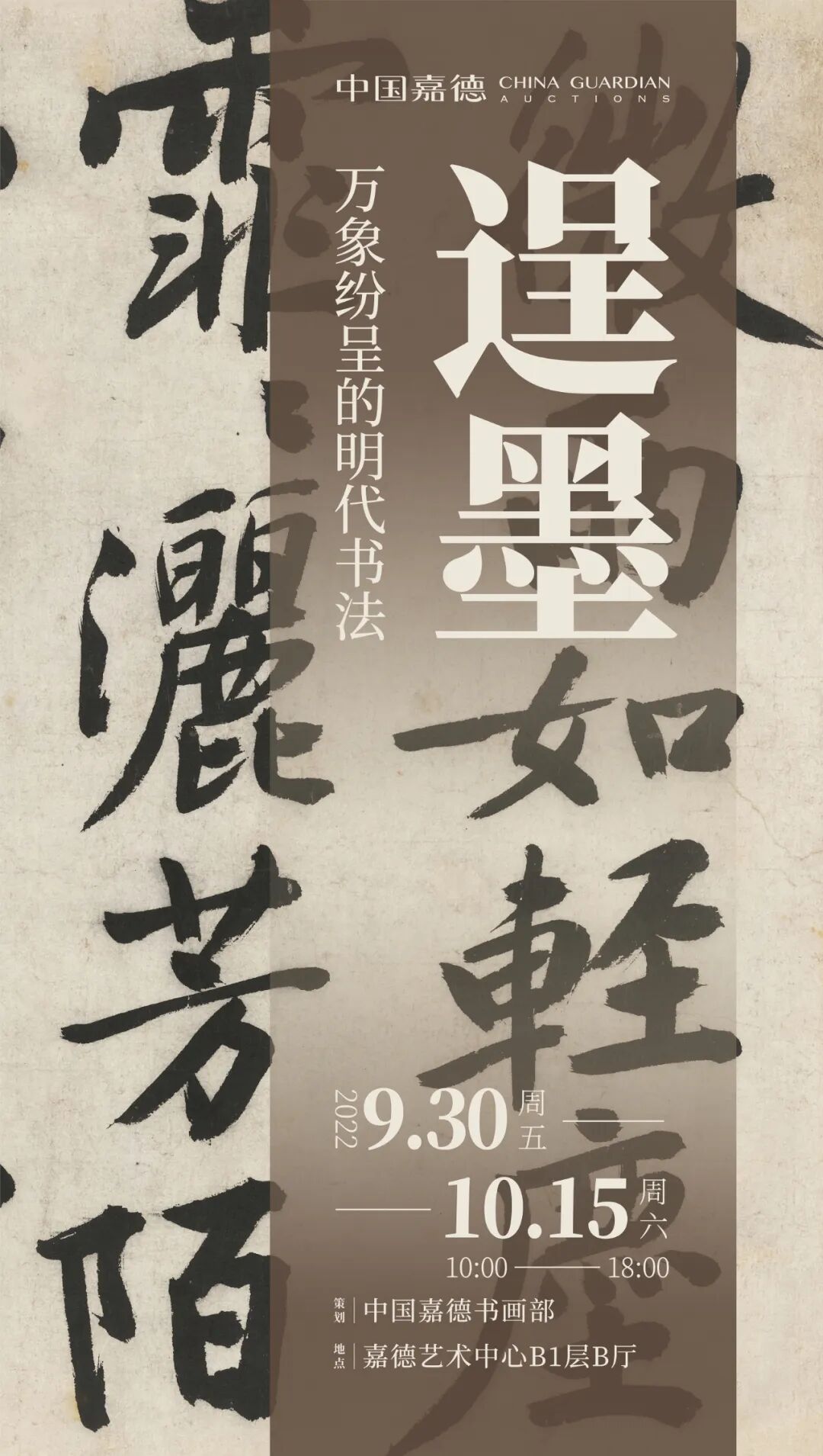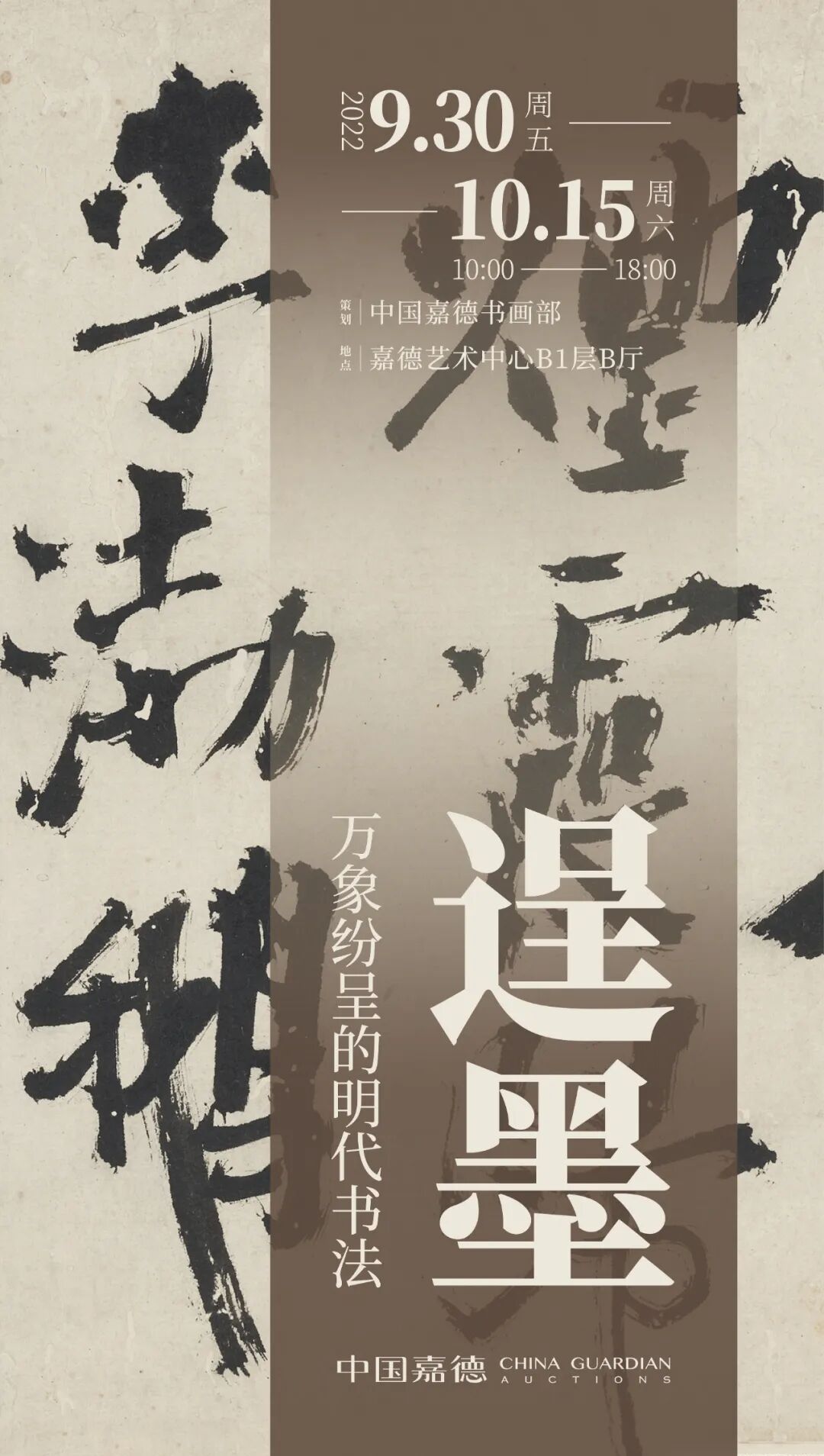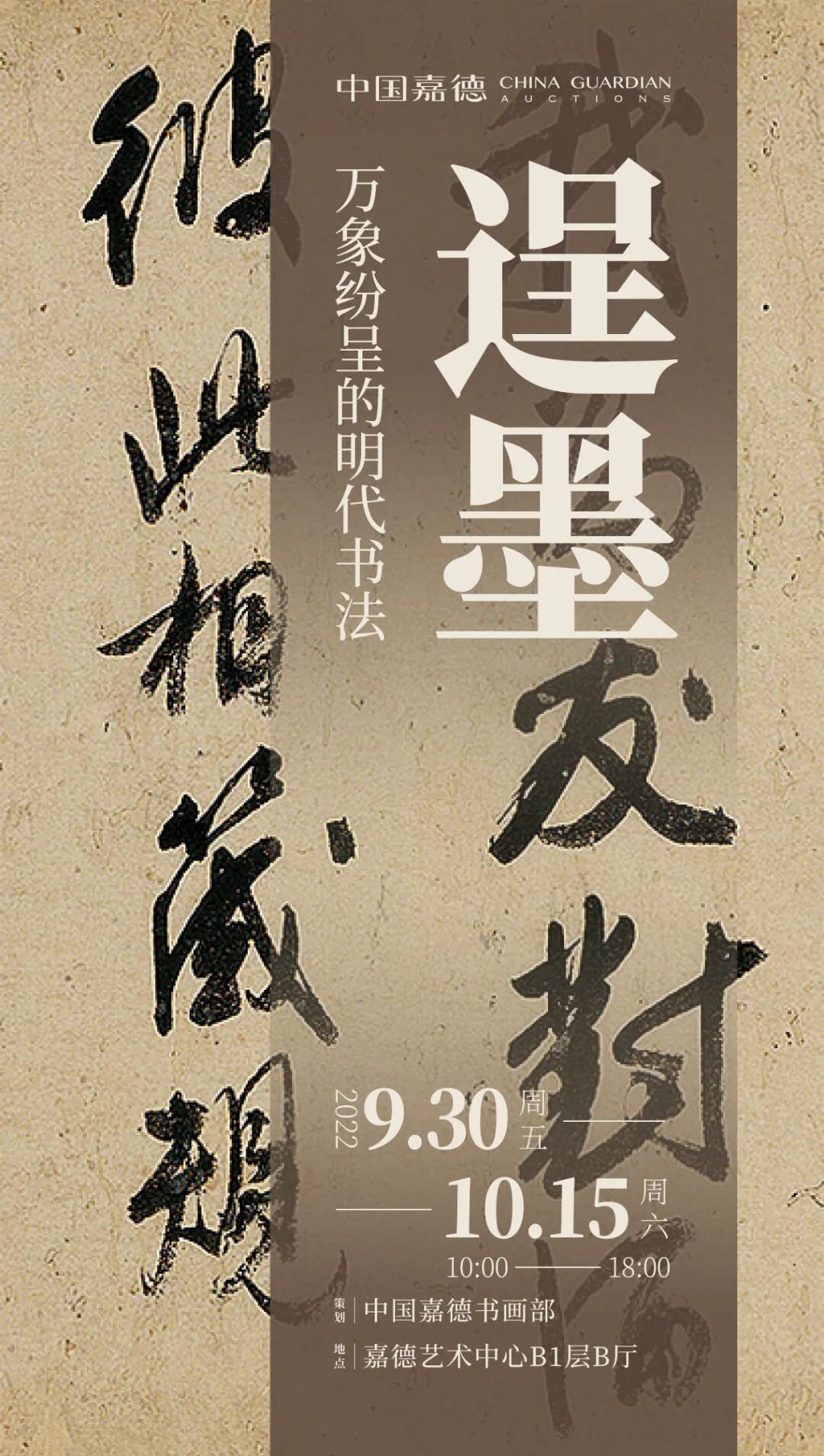 明代书法是中国书法史上的重要阶段,从中期地域流派的形成到晚明多元书风的形成,从“诗书画印”一体化的发展到书法样式的基本完备,从对元代书风的师法继承到明代书风的自我创造,均有着十分重要的意义。为此之故,明代书法向来也是古代书画市场的重要板块,且相较于更早,传世墨迹已极珍罕的宋元时代,明代书法具有一定的传世数量,也能够满足藏家择精而取的收藏需求。金秋十月,中国嘉德古代书画部隆重推出明代书法主题展“逞墨——万象纷呈的明代书法”,集结私人珍藏明代书法精品计四十余件,涵括明初以草书书风影响一时的张弼、陈献章;中期在明代书法史中扮演重要角色的吴门书派,领衔者祝允明、唐寅、文徵明,及文氏传派文嘉、文彭、周天球等;再到晚明书坛,极大丰富了书法艺术审美内涵的董其昌、米万钟、黄道周、张瑞图、王铎等诸名家名品杰构,其中十一件曾经《中国古代书画图目》出版、著录,共同呈现有明二百七十余年,流派纷呈、风格多元的书法世界。