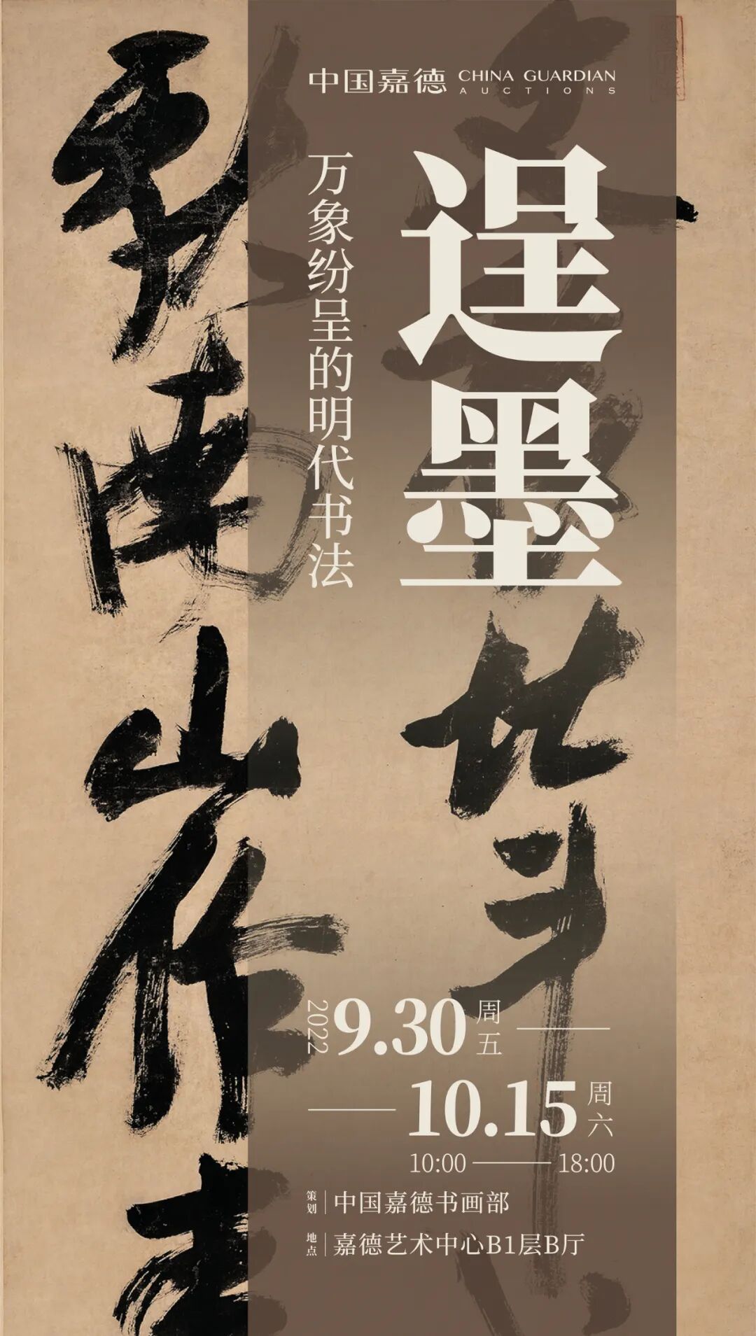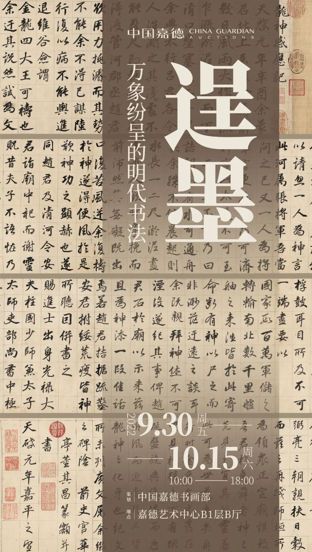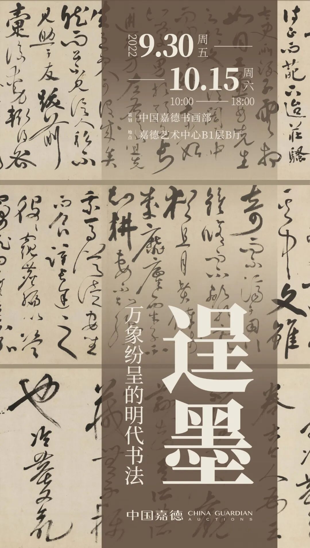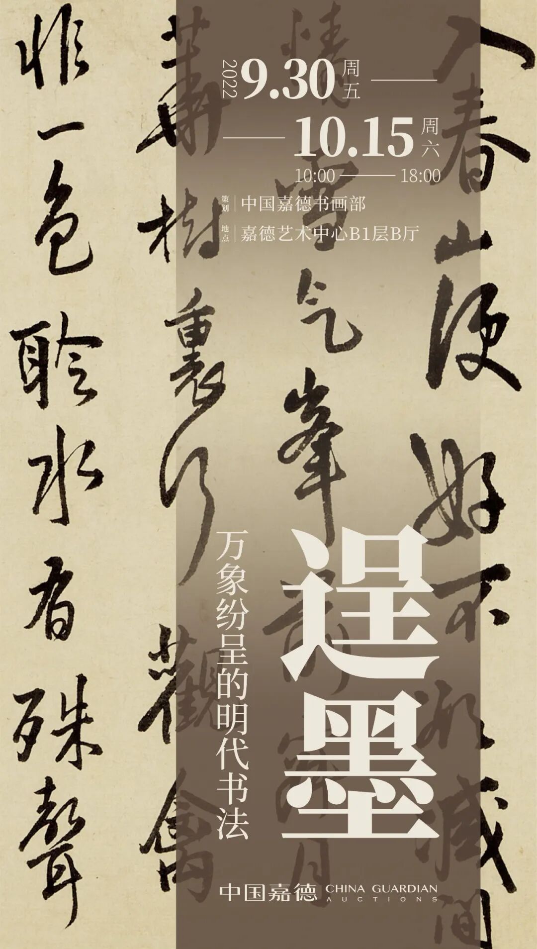 明代书法是中国书法史上的重要阶段,从中期地域流派的形成到晚明多元书风的形成,从“诗书画印”一体化的发展到书法样式的基本完备,从对元代书风的师法继承到明代书风的自我创造,均有着十分重要的意义。为此之故,明代书法向来也是古代书画市场的重要板块,且相较于更早,传世墨迹已极珍罕的宋元时代,明代书法具有一定的传世数量,也能够满足藏家择精而取的收藏需求。金秋十月,中国嘉德古代书画部隆重推出明代书法主题展“逞墨——万象纷呈的明代书法”,集结私人珍藏明代书法精品计四十余件,涵括明初以草书书风影响一时的张弼、陈献章;中期在明代书法史中扮演重要角色的吴门书派,领衔者祝允明、唐寅、文徵明,及文氏传派文嘉、文彭、周天球等;再到晚明书坛,极大丰富了书法艺术审美内涵的董其昌、米万钟、黄道周、张瑞图、王铎等诸名家名品杰构,其中十一件曾经《中国古代书画图目》出版、著录,共同呈现有明二百七十余年,流派纷呈、风格多元的书法世界。