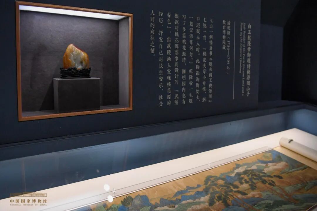 上篇“民惟邦本”,通过《乾隆南巡图》卷之《驻跸姑苏》、“士农工商”“渔樵耕读”题材的器物家具以及祈祝朝野安定、国泰民安的铭文玺印等内容的展示,描绘出古代社会农商百业共同发展、天下万民共赴繁荣的和谐图景;与此同时,“桃园图”题材的手卷、玉山则生动体现了生民各得其所、百姓安居乐业的社会理想。