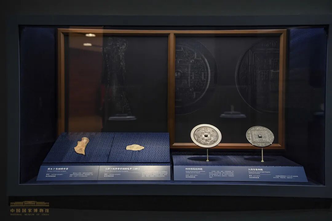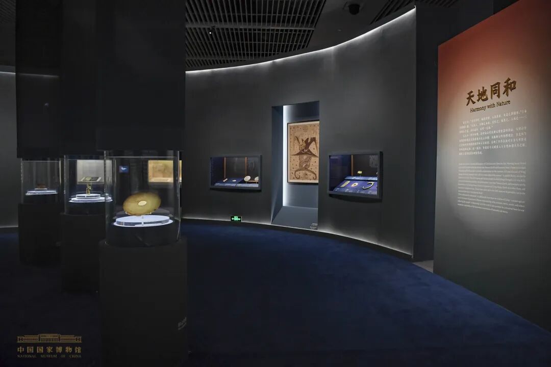 上篇“道法自然”,揭示了中华民族对自身与世界关系的基本认知,展示内容具体分为三个部分:一、用于沟通天地、祭祀祖先的玉制礼器,和以铜镜、甲骨为载体,表现古人通过观测天文地理和自然生灵而创造出的揭示宇宙规律的符号、文字和图像;二、对自然物质直接开发利用的实践活动与实物遗存,如凿石、斫玉、磨骨、缫丝等,以及由此发展而来,倾注古人认识自然规律更多思考,并对人类文明进程产生深远影响的制陶、冶铜、髹漆等技术成就与物质成果;三、反映中华民族以时系事,由自然现象引发的情感共鸣与审美活动融入劳动实践和物质创造之中,从而形成独特文化传统的艺术作品和理论专著。