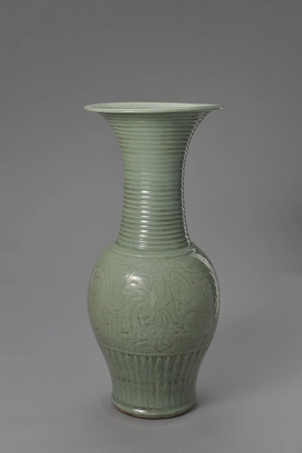 龙泉窑青釉刻划缠枝牡丹纹凤尾尊