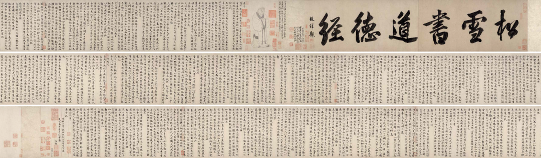 楷书《道德经》卷是元延祐三年(1316年)赵孟頫63岁时为友人进之所书,为其小楷代表作之一,卷首有赵孟頫所绘老子肖像。全卷5000余字一气呵成,点画精到遒劲,笔势圆转流动,结体严谨端庄,格调典雅,略参魏晋小楷之意,系作者晚年得意之笔。