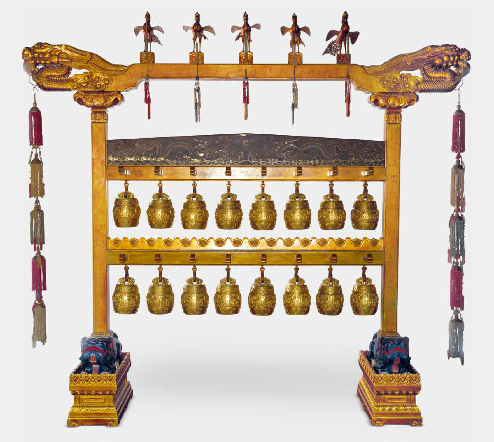 编钟是先秦以来历代宫廷雅乐沿用的“乐悬”重器,明清时期专用于规格最高的中和韶乐,仅用于中祀以上坛庙的祭祀典礼和国家朝会殿陛典礼。
