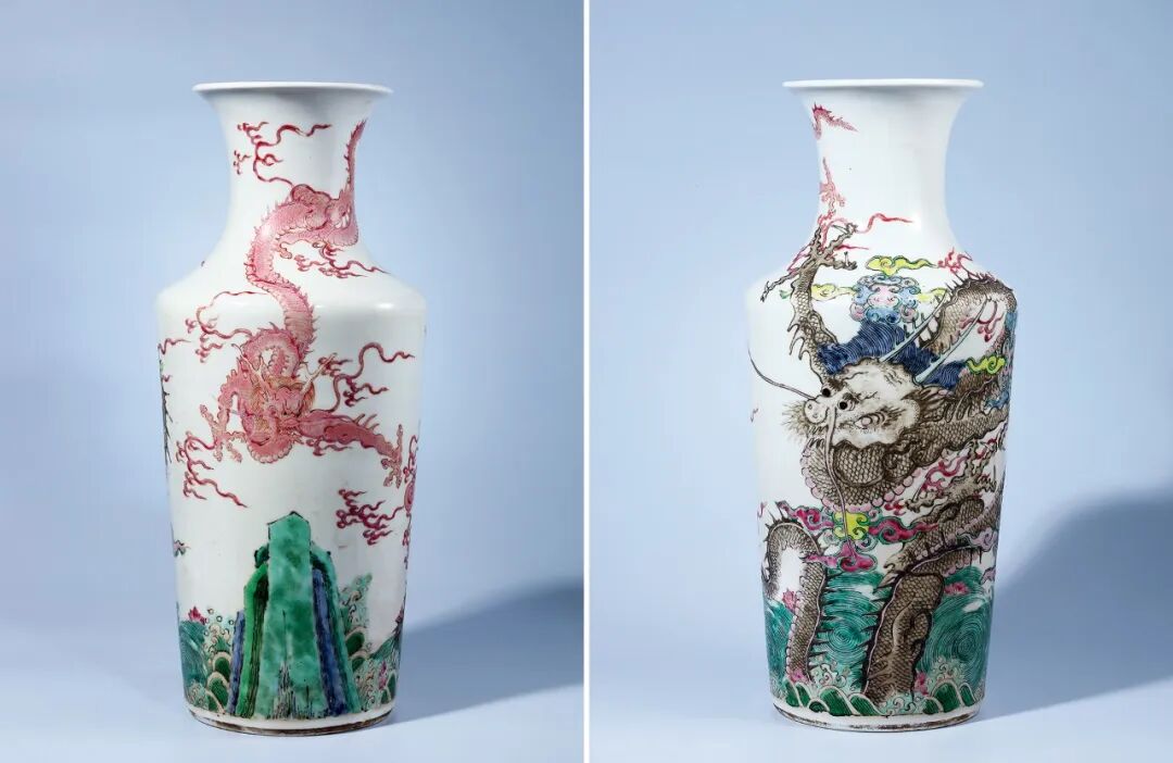 清雍正 粉彩苍龙教子图软棒槌瓶