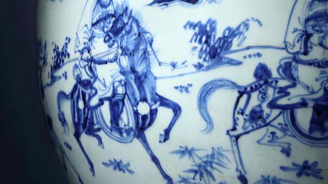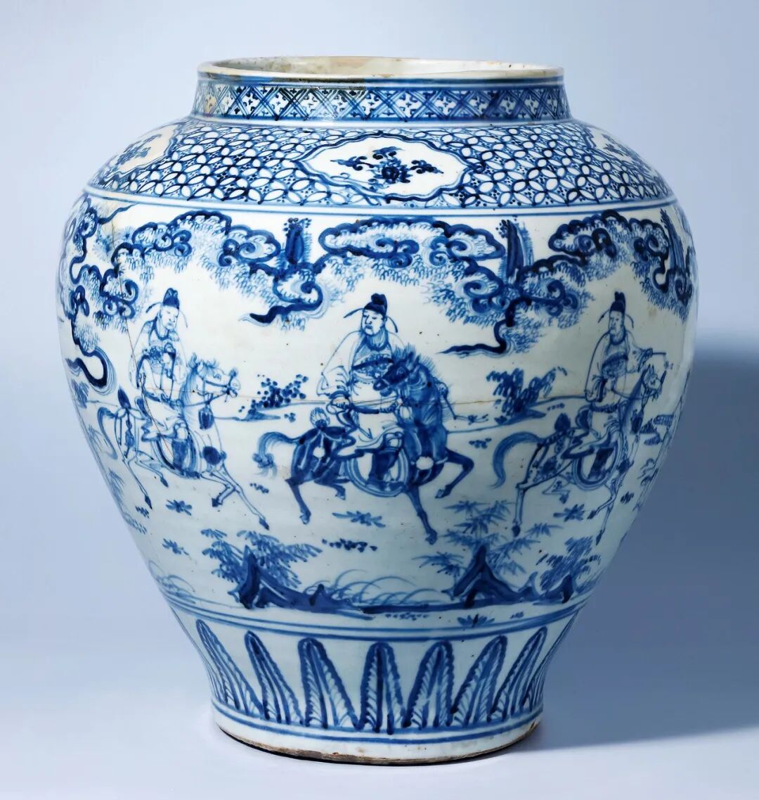 明天顺 青花携琴访友图大罐