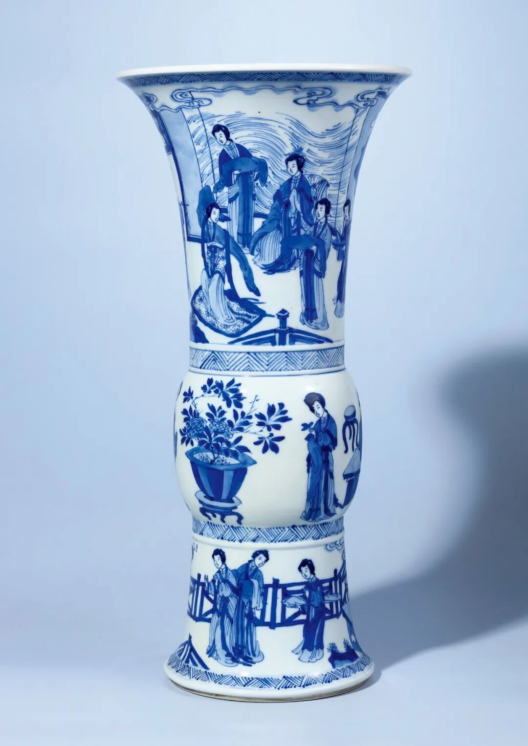 清康熙 青花舞乐图花觚