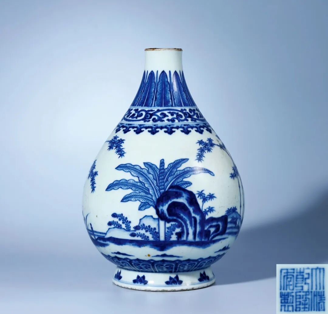 清乾隆 青花竹石芭蕉纹玉壶春瓶