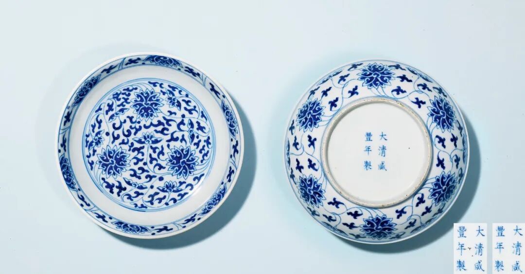 清咸丰 青花缠枝莲纹盘(一对)
