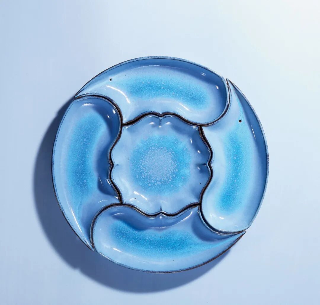 清初 欧窑宜钧天蓝釉攒盘(一组五件)