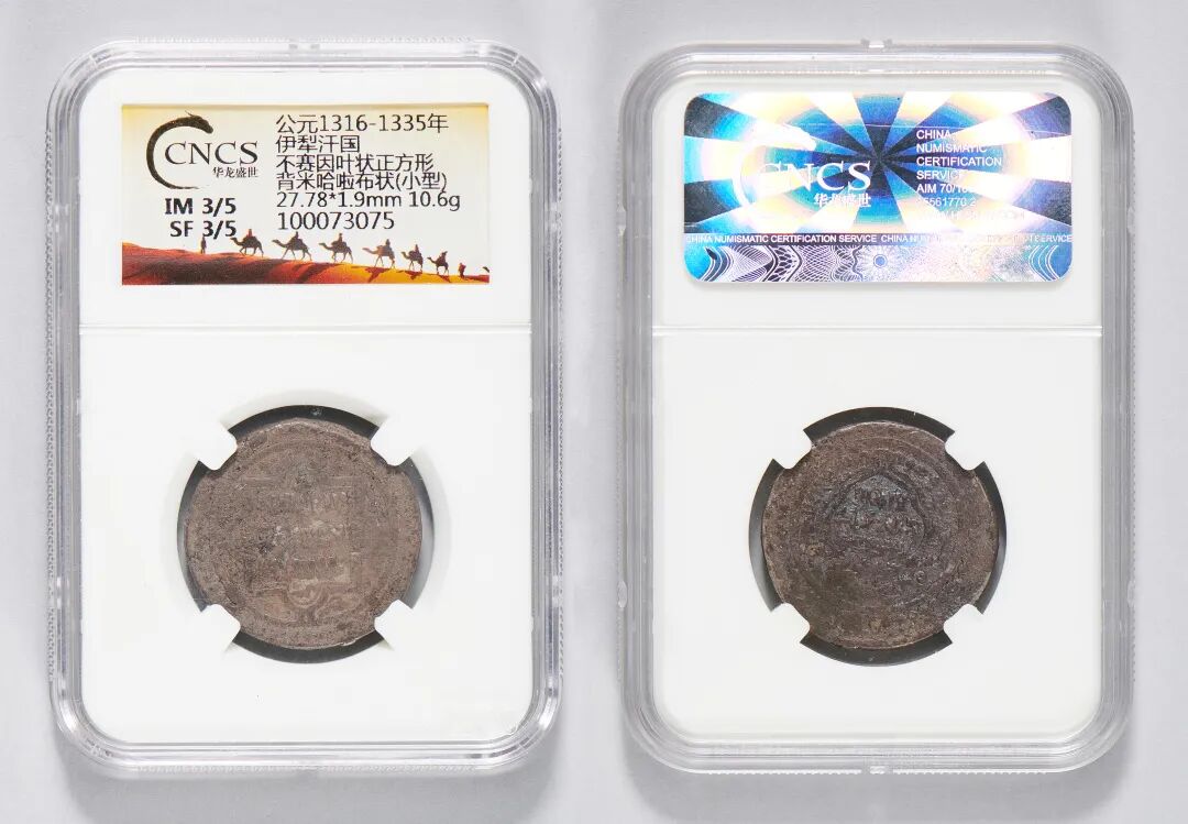 公元1316-1335年,伊利汗国,不塞因叶状正方形,背米哈拉布状小型钱币