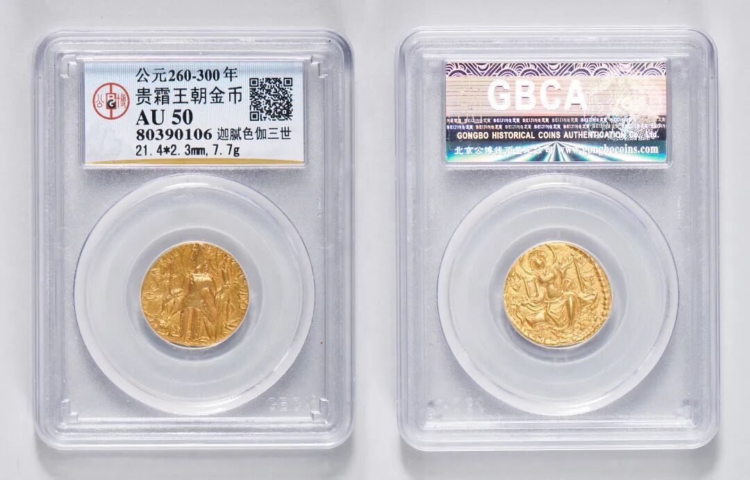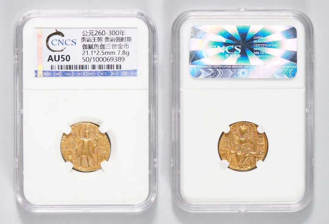 公元260-300年,贵霜王朝,迦腻色伽三世像金币