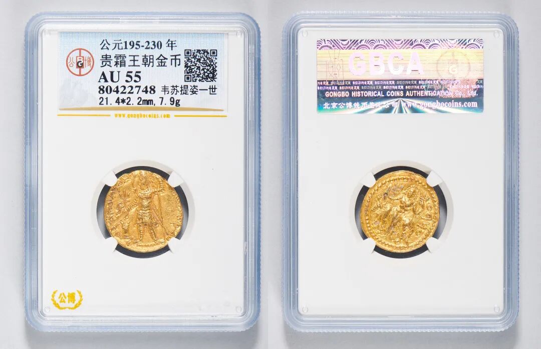公元195-230年,贵霜王朝,韦苏提姿一世像金币