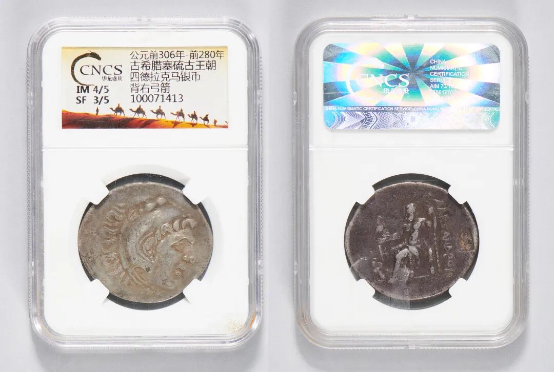 公元前306年-前280年,古希腊塞琉古王朝,四德拉马克银币,背右弓箭
