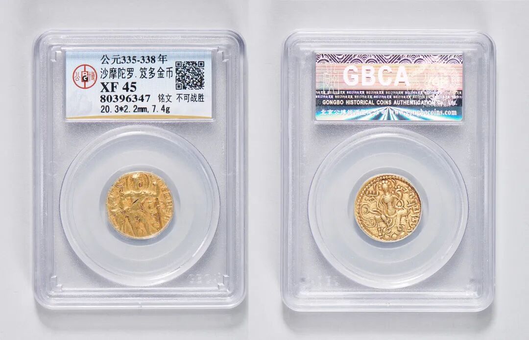 公元335-338年,沙摩陀罗·笈多金币,铭文不可战胜