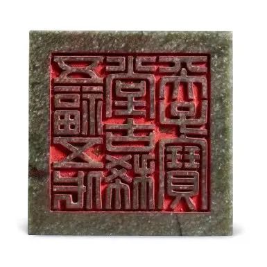 清乾隆 乾隆帝御宝青玉交龙钮方玺 印文:五蝠五代堂古稀天子宝 估价2500-3500万港元