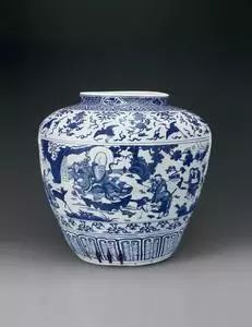 传说中的道教神仙。画面有八仙过海、八仙祝寿、八仙捧寿等。后两种纹饰有时另多两人,一位是肩扛桃枝或手捧寿桃的东方朔,另一位是高颅顶的老寿星。