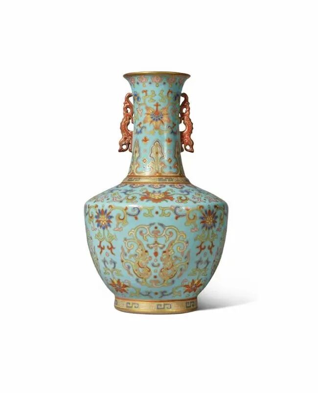 领衔拍品为一件瑰丽的清乾隆松石绿地粉彩描金团龙吉庆纹螭耳瓶,还有李尔白及骆桂生伉俪收藏的明代青花佳瓷,以及更多来自日本私人收藏的明清瓷器及高古陶瓷精品等。