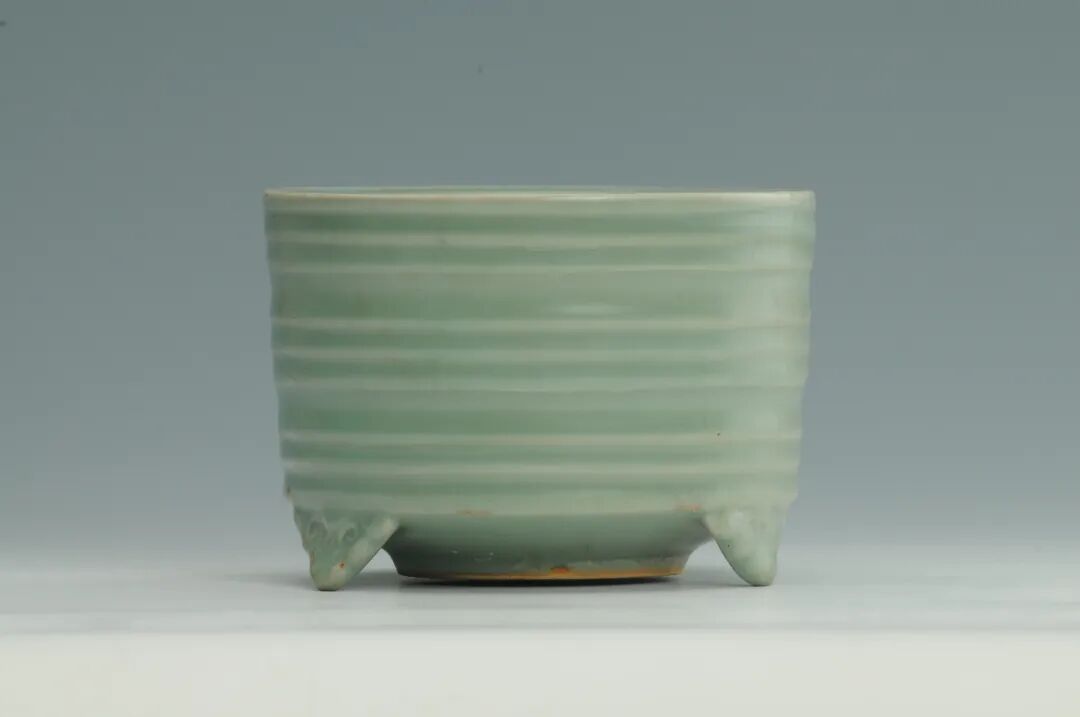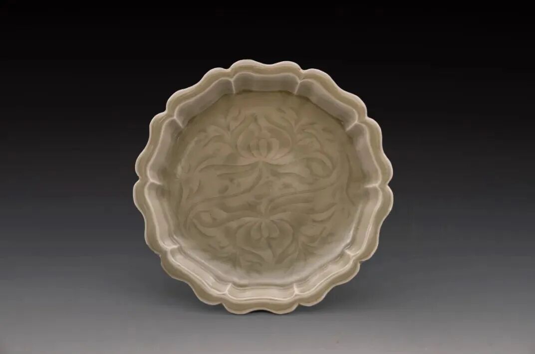 南宋时期的龙泉窑瓷器,除供国内市场使用,还曾远销东亚、东南亚、西亚等地。展览中展出的一件广东南海一号沉船遗址出水的南宋龙泉窑青釉菱花口瓷盘,胎质紧密,釉层较厚,属质量上乘的外销瓷器。(广东南海一号沉船遗址出水 广东省文物考古研究院藏)值得注意的是,龙泉窑因窑址众多,大致以今龙泉市为界分为南区与东区两大区域,以大窑窑址为中心的龙泉南区产品质量总体上高于东区,一般认为龙泉东区窑场生产普通日用瓷与外销瓷器,而南区窑场主要生产供奉用瓷与高质量日用瓷。但南海一号沉船遗址中发现的龙泉窑瓷器,大多与龙泉南区大窑窑址出土器物相同,质量也普遍较高。说明至少自南宋中晚期开始,龙泉窑外销瓷器的生产并不局限于某个区域,南区与东区均有。![]()