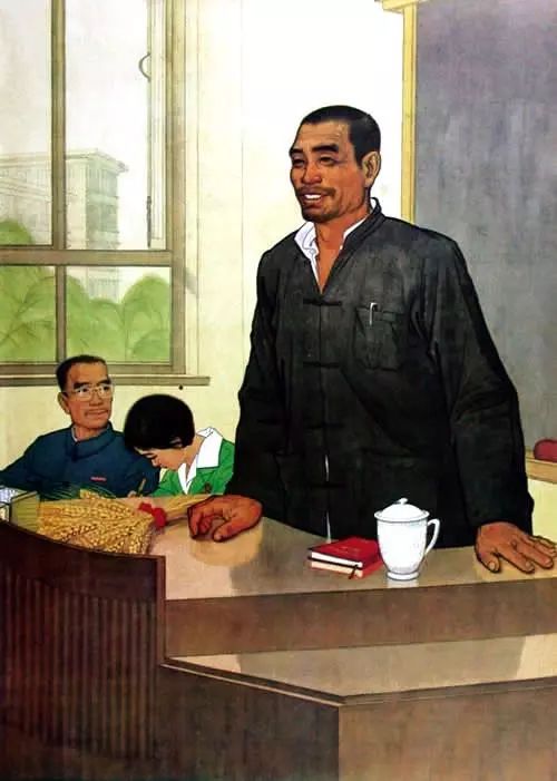 这张画在文革中的历史地位,仅次于《毛主席去安源》,简直可以称作文革后期的《毛主席去安源》。该作品创作于1974年,由陕西省文化局美术创作组集体完成、刘文西主要执笔,作为重要革命历史创作参加《庆祝中华人民共和国成立二十五周年全国美术作品展览》。