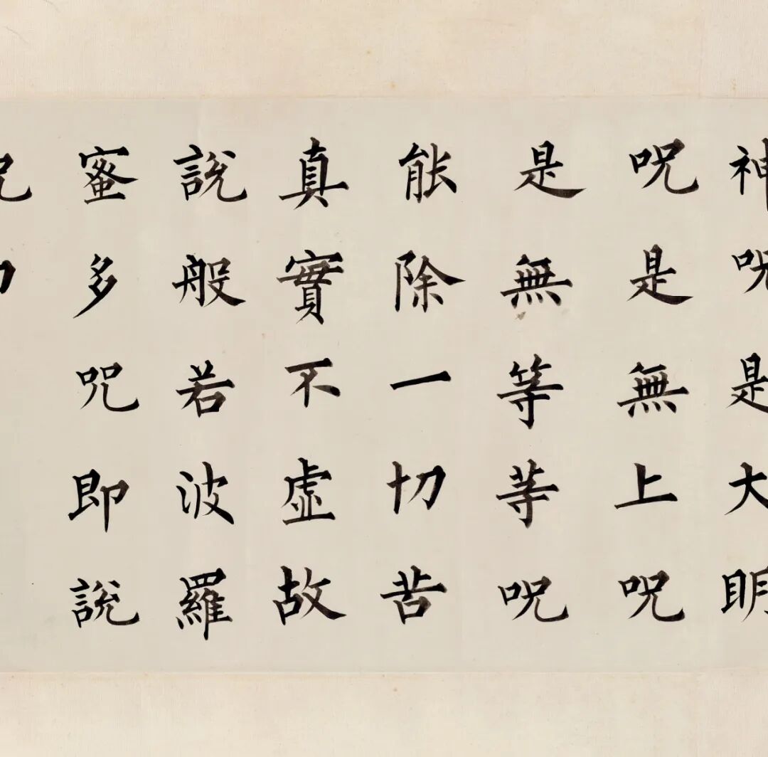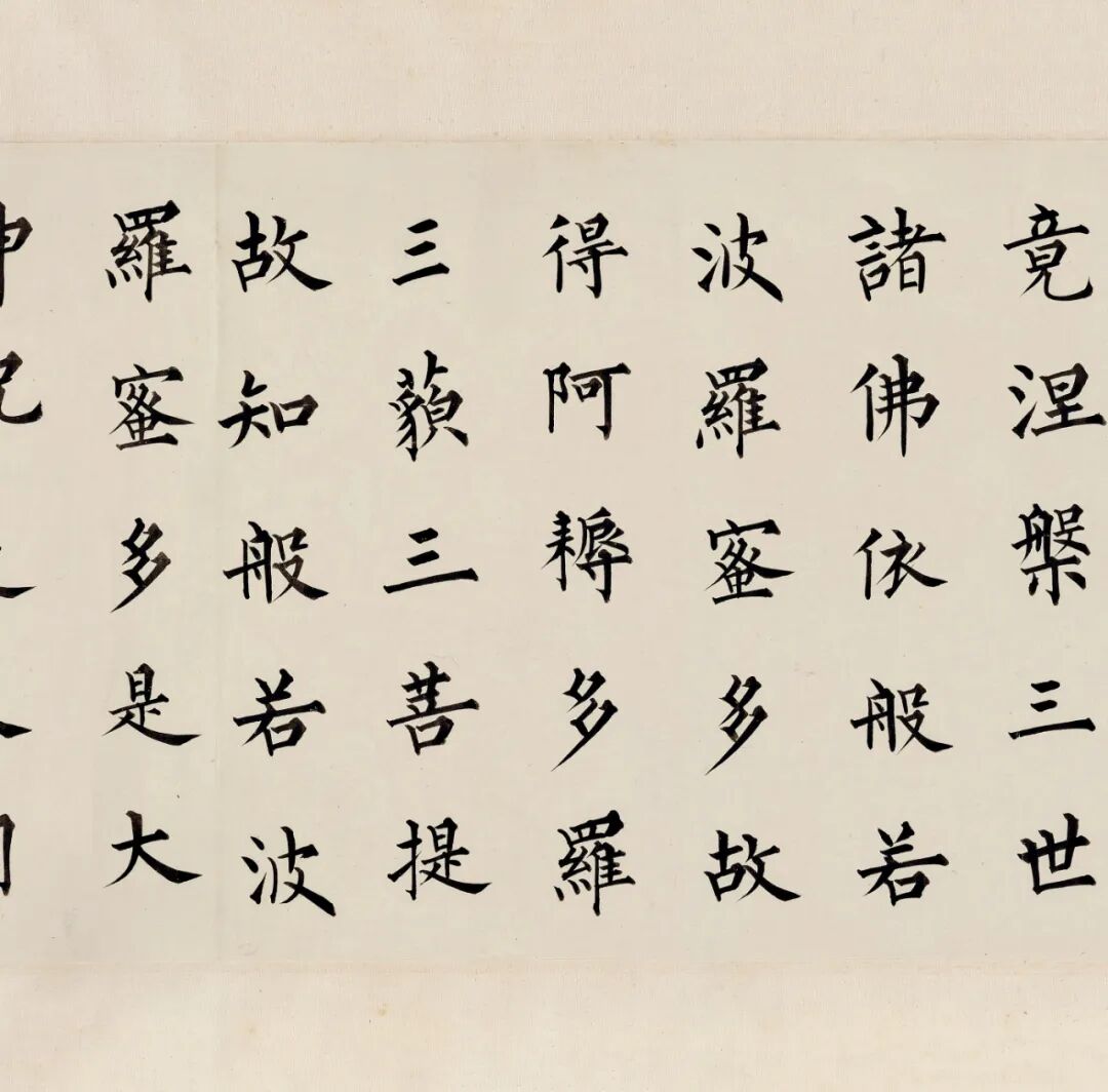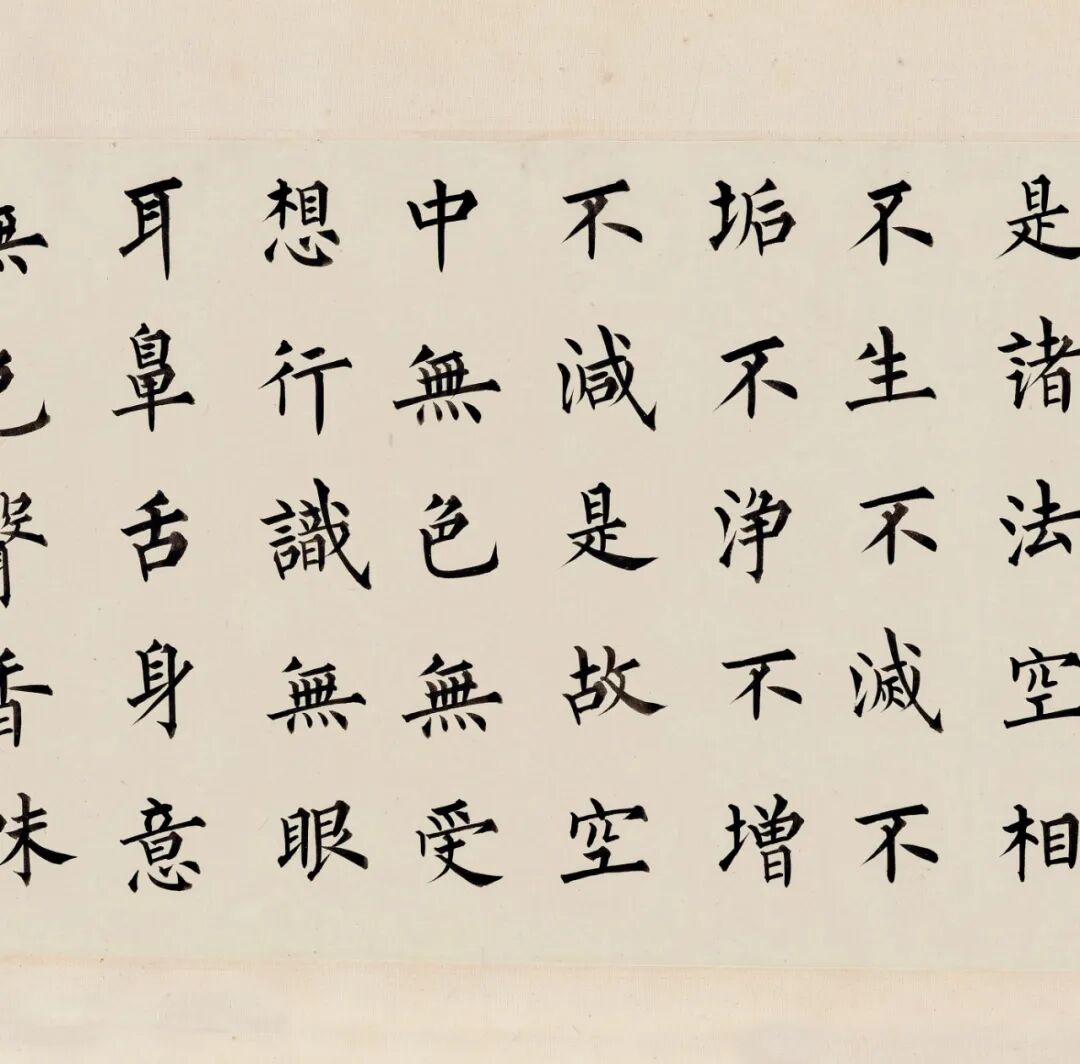 签条:溥心畲临裴休书般若波罗蜜多心经卷。钤印:寿同金石、静盦