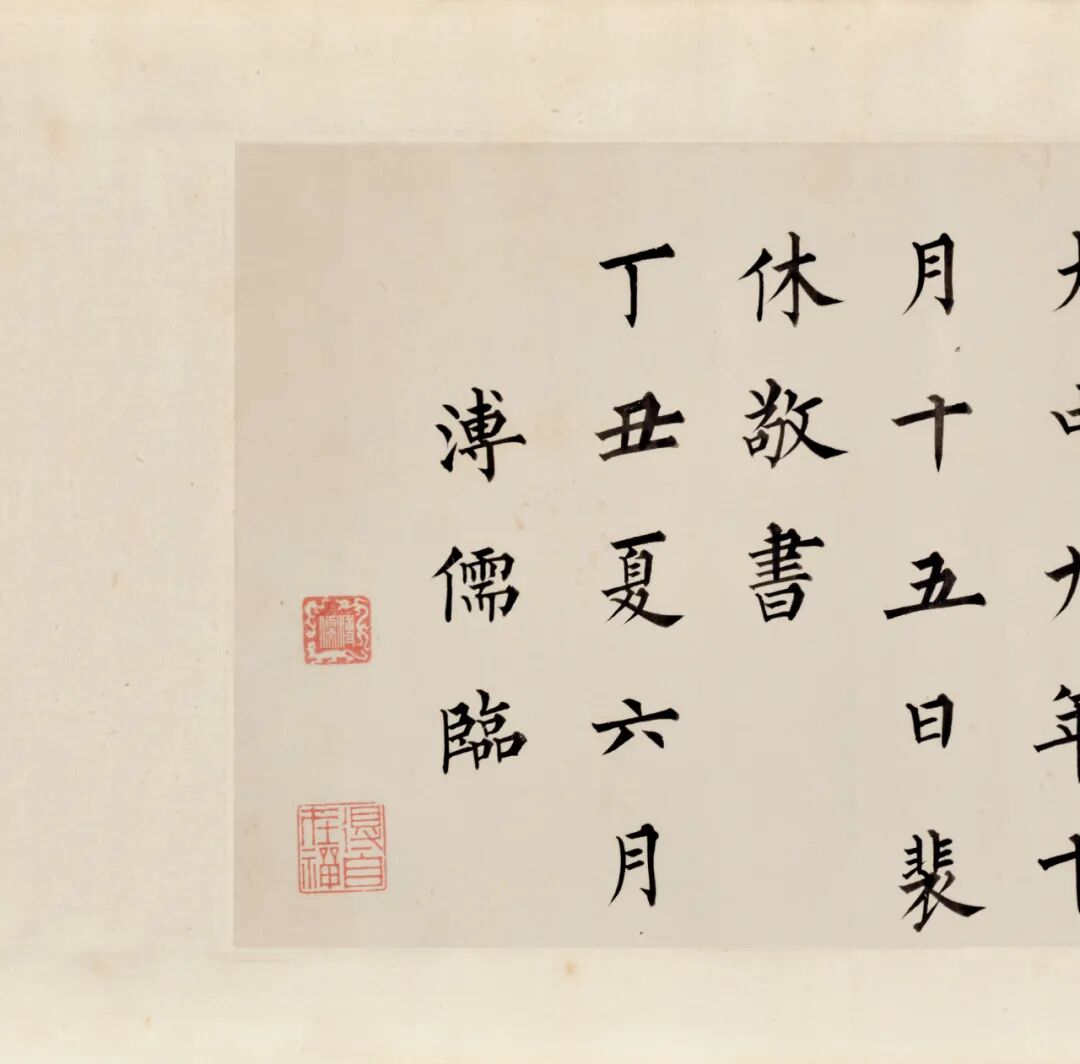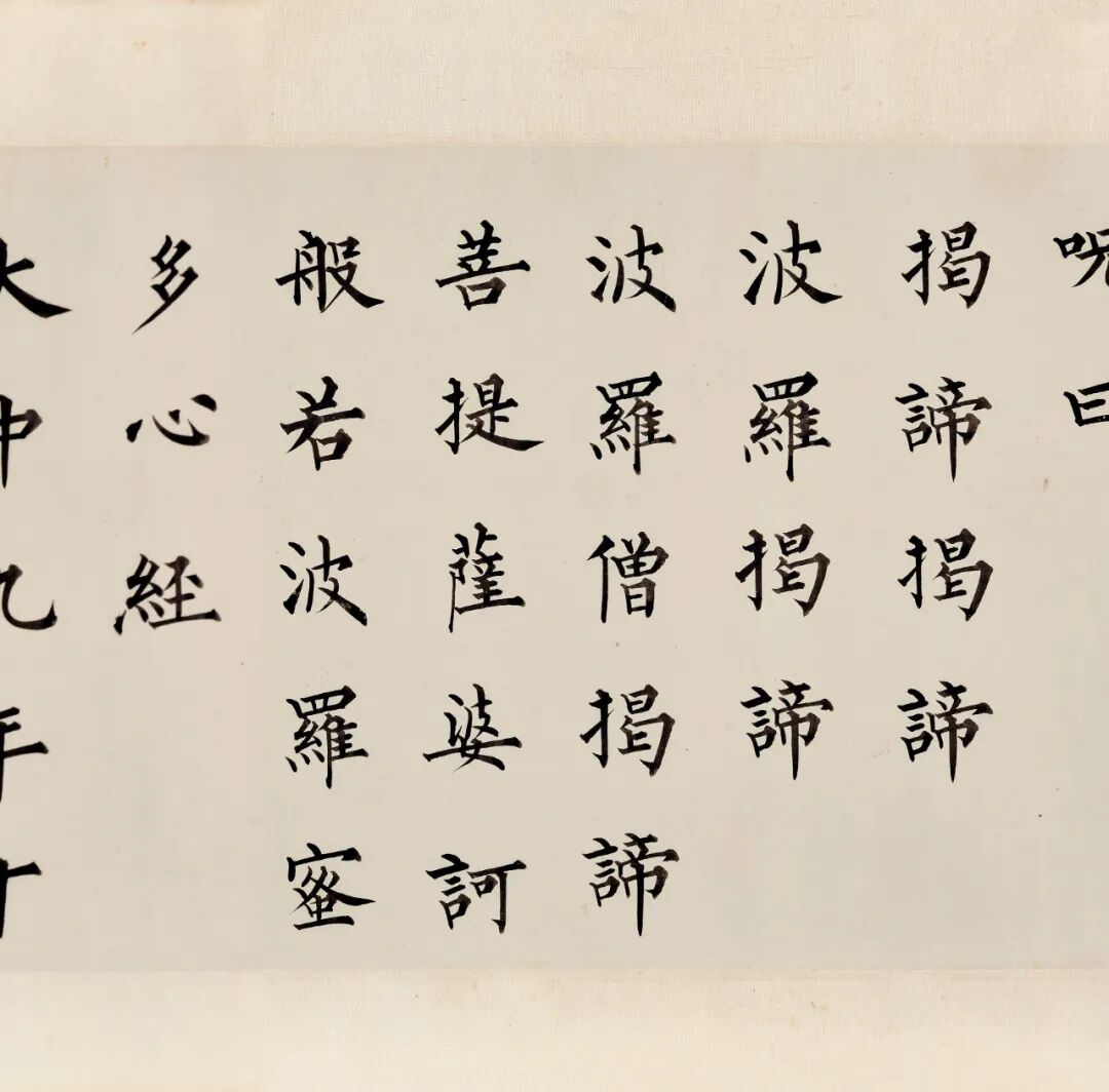 在书法部分,溥儒临裴休书《般若波罗蜜多心经》卷,秀逸出尘,首尾分别有徐燕孙弟子金协中作《释迦牟尼说法图》, 《韦陀菩萨护法图》,两图与佛经共同构成了中国佛经抄写的标准制式。是卷曾于1990年被文物商店选入《文物选集》中编印出版。是不可多得的旧王孙楷书神品。