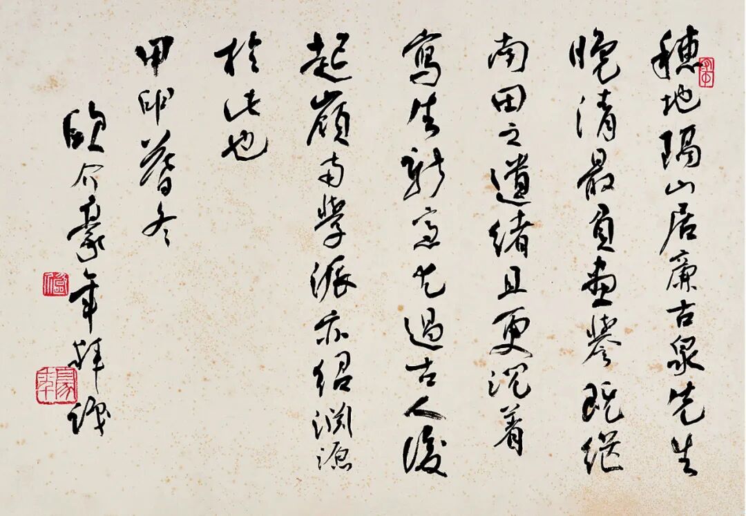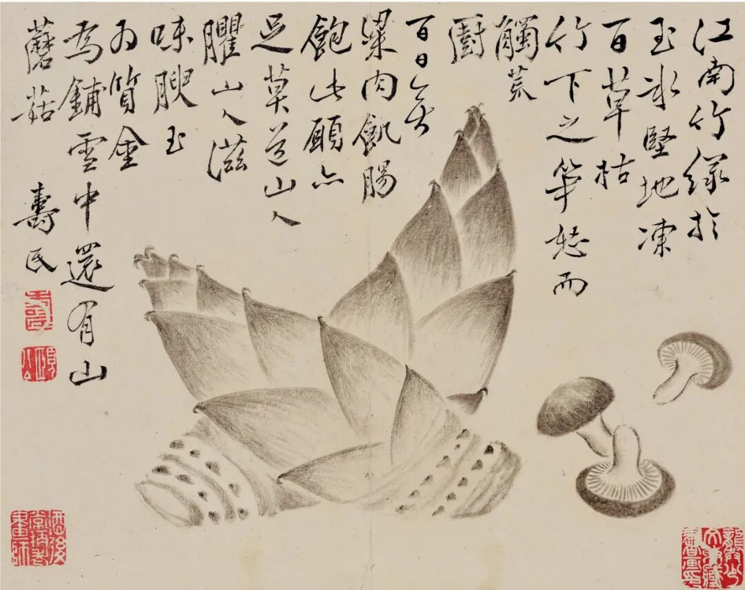 钤印:颐公、苇间居士、寿民(四次)、颐公(四次)、颐公(三次)、以心慧行其所见、含毫邈然、酒后常称老画师、画禅如南山之寿