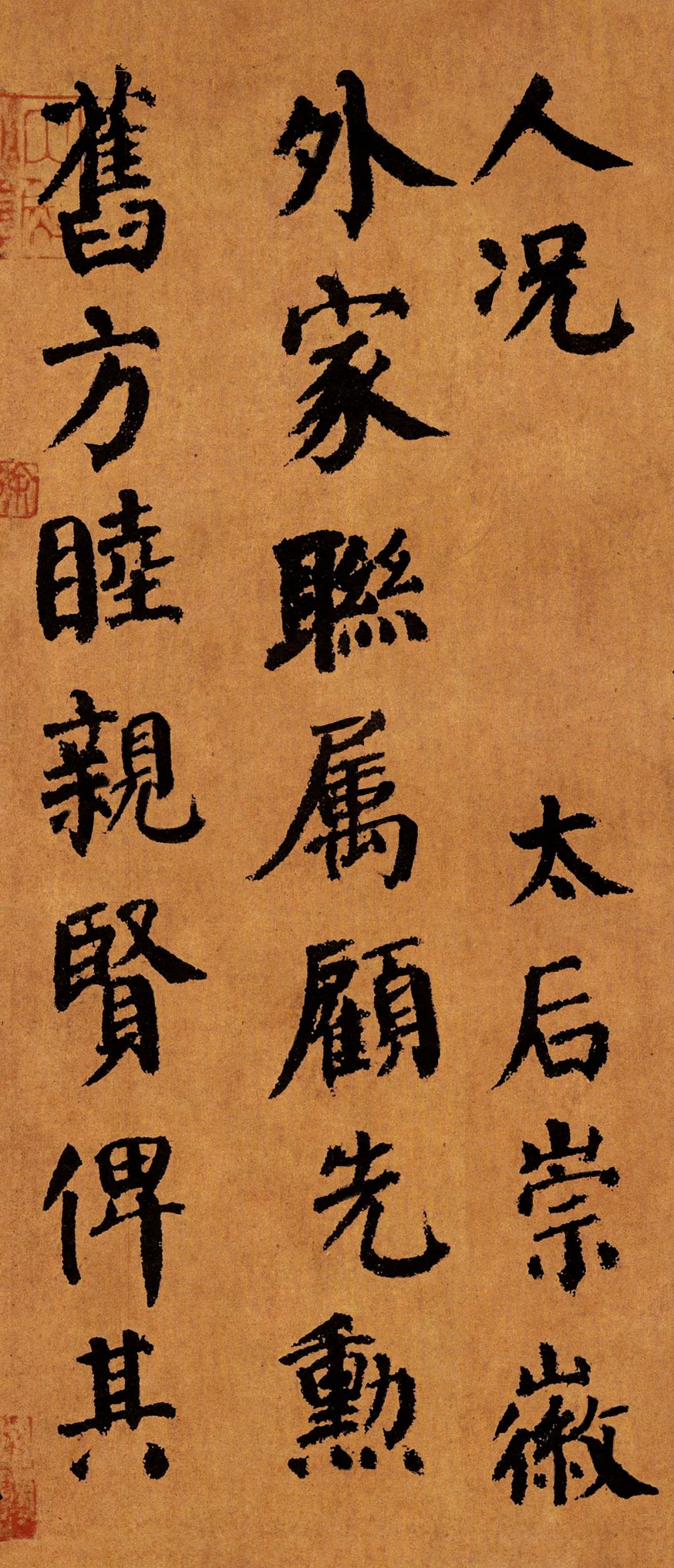 在“颜体”楷书的其它作品当中,有宽博雄强的《颜勤礼碑》,此碑面目开张,极具气度,是颜体风格极为强烈的名作。也有晚年颜真卿为父亲所写的《颜家庙碑》,此碑乃是颜真卿通会之际的炉火纯青之作,字字精彩无双,堪为模范。除此之外,还有奔放而天然的《东方朔画赞碑》,也有精妙无双的《李玄靖碑》等等。