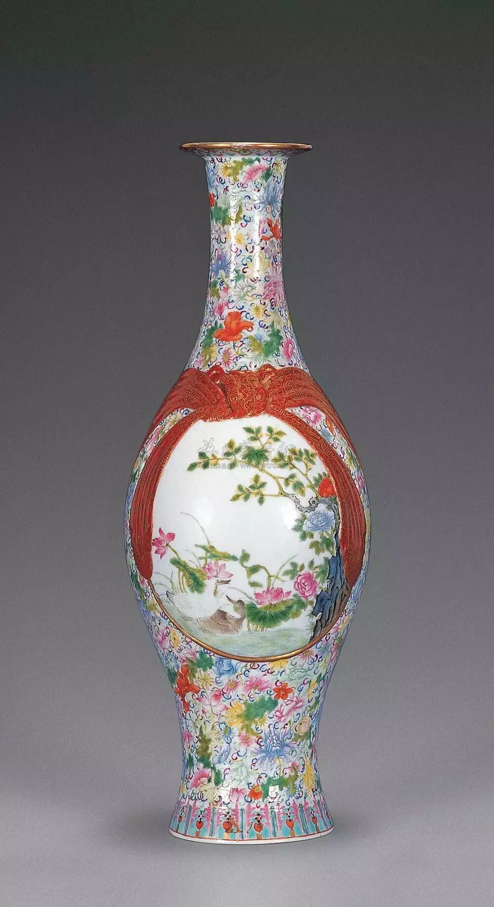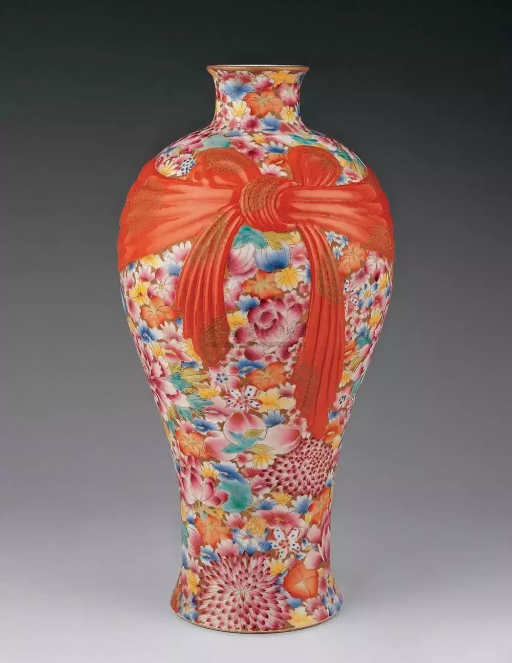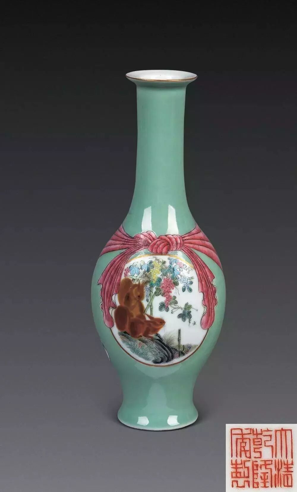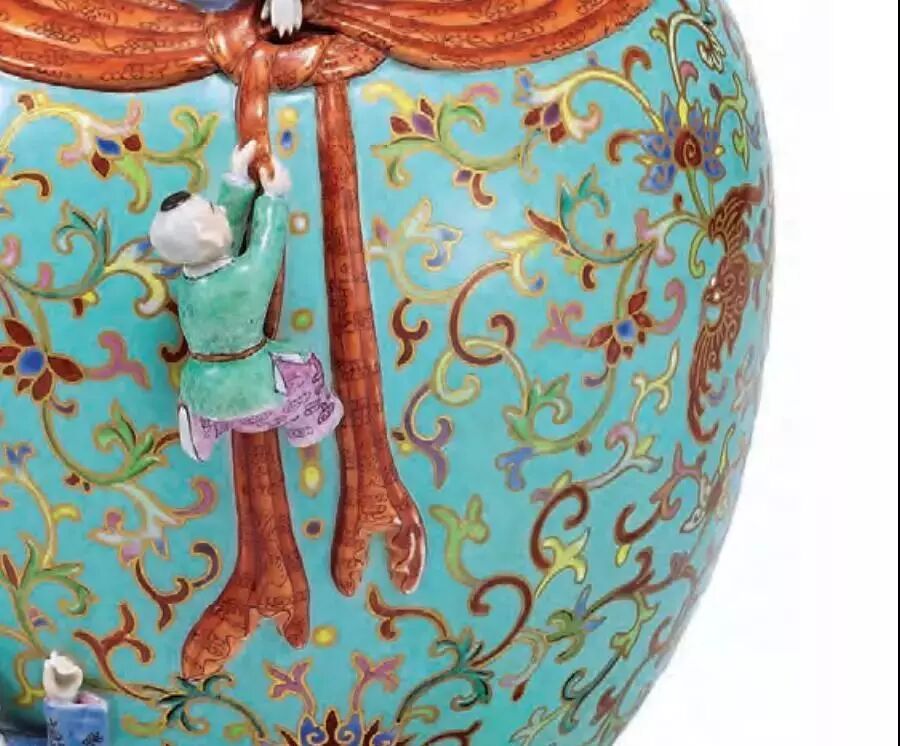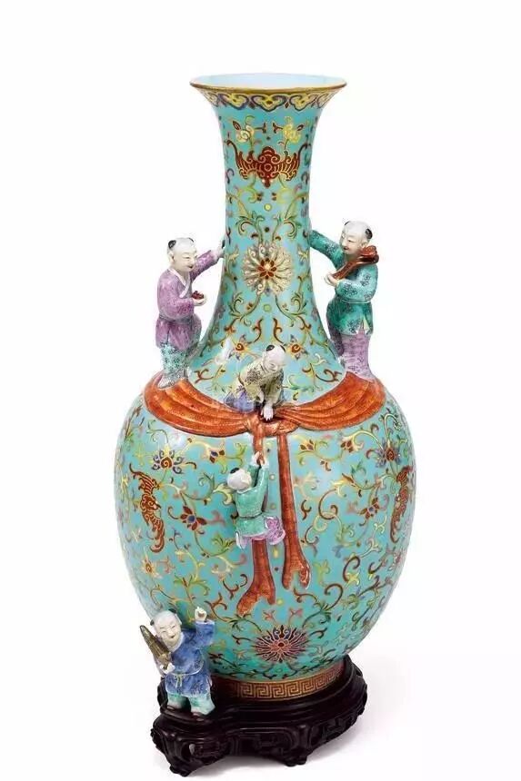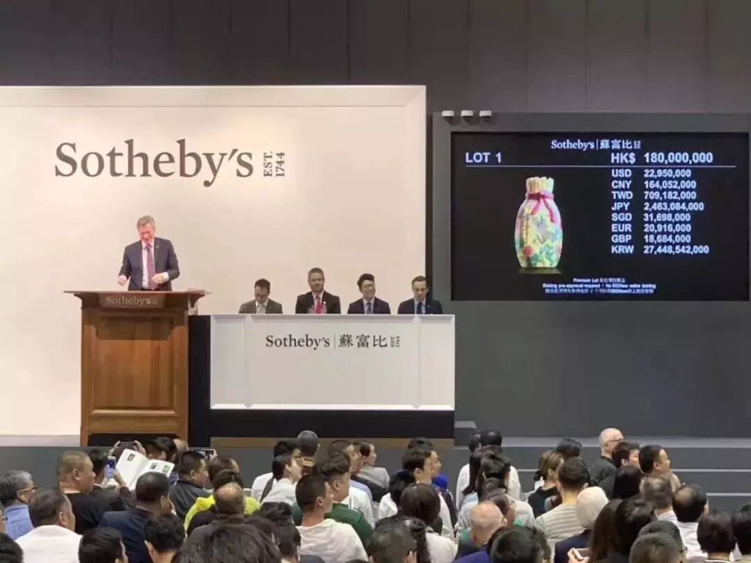 昔日恭亲王奕訢府中宝珍,先后收入巴尔(A.W. Bahr)、保罗.白纳德(Paul and Helen Bernat)伉俪典藏,至2000年秋由「乐从堂」主人以当时创纪录价2,400万港元纳入珍蓄,如今得见,诚艺坛美事。这件清乾隆料胎黄地画珐琅凤舞牡丹包袱瓶,以2.07亿港币成交,为本季秋拍再添一件亿元拍品,也为此次秋拍画上了一个圆满的句号。这件包袱瓶原为乐从堂主人曹兴诚所有,2000年,为庆祝他的晶片公司在美国纽约上市,曹兴诚以2424万港币购入了这件包袱瓶。19年后,曹兴诚分批将乐从堂藏品释出,此包袱瓶拍前估价超过2亿港币,最终以1.8亿港币落槌,加佣金以207,086,000港币成交,增值8倍,升值速度可谓惊人。雍正、乾隆时期,包袱装饰是宫廷御用器的流行题材,有指「包袱」取谐音「包福」的吉祥寓意。据档案记载,乾隆帝特别喜欢的各类器皿,都会要求造办处专门配做锦袱包裹,或用楠木匣盛装,并把器物名称、年号刻在匣盖上,以示珍藏。御制料胎画珐琅包袱瓶,成于乾隆初年,堪称私人收藏清代宫廷艺术品中至宝至珍。此包袱瓶能有今天的成交价和其拥有清晰的传承脉络有密不可分的关系。此件拍品为台湾乐从堂收藏,此前自有记录以来先后由恭亲王奕(传)、埃布尔·巴尔、保罗·白纳德伉俪递藏,后分别于1988年、2000年在香港苏富比拍出,2012年曾展览于“清翫雅集廿周年庆收藏展:器物”,后著录于耿宝昌所作《雅器天成——清翫雅集珍藏陶瓷器掇英》一书中。辗转过程中被历任收藏者珍爱。其中,恭亲王奕为清末洋务派、总理衙门首领,他是洋务运动的中枢首脑,主张学习外国科技以加强中国军事实力,并支持开办了中国早期的近代军事工业,是清朝不可多得的政治、外交人才。他收藏颇丰,恭王府设多间藏书楼,所藏珍品书目多达2000种,此外还有珍罕书画在藏,赵孟頫、倪瓒的作品均在其列。巴尔自1905年开始中国艺术品收藏,之后成为古董商,多年间搜罗中国御制艺术品甚多。1908年,他于上海展出超过三千件中国瓷器与工艺品,1911年出版展览图录。后于1922年、1926年等举办多场大型拍卖会,而其藏品现已入藏多家知名博物馆,如纽约大都会艺术博物馆、芝加哥菲尔德自然史博物馆、华盛顿弗利尔美术馆、伦敦大英博物馆。保罗·白纳德为织品制造商,专注于收藏清宫御制器物,在其收藏名录中有多件珐琅作制品,与该件拍品师出同源。香港苏富比曾于1988年为其收藏举办专场拍卖。乐从堂则为台湾收藏家曹兴诚堂号,其收藏珍品颇丰,甚至有“小故宫”之称。近几年中国古董拍场上能叫得出名号的顶尖拍品不少都有乐从堂的收藏记录。如2018年香港佳士得一件明嘉靖五彩鱼藻纹盖罐以2.1385亿港元成交,2017年香港苏富比的北宋汝窑天青釉洗以2.94亿港币刷新中国瓷器世界拍卖纪录,也刷新了大众对于宋瓷的认知。他的收藏屡屡以破纪录的方式吸引世人瞩目,这件包袱瓶亦然,从巡展、预展到最后的成交,一路斩获世界关注,也终于落槌定音,不负众望。清乾隆料胎黄地画珐琅凤舞牡丹包袱成为行方本季大拍最贵,也拔得本季香港秋拍头筹。无独有偶,香港艺术博物馆收藏一件与此几乎一模一样的包袱瓶,瓶的造型、黄颜色的地色,特别是署款方式都一样,只是纹样不同,装饰螭龙纹和花卉。这是一对同时制作的精品,也是目前所见尺寸最大的瓶。仅瓶的成型也有一定的难度,瓶身具有楞状,需要有模吹制,而瓶口的褶皱,则需要工匠手快、眼快,技术好,因玻璃在瞬间就凝固了,至少在成型时需要反复几次,才能制作出漂亮美观的器形。其实传世的清代官窑包袱瓶还是偶尔能在重要大拍中见到的。去年在东京中央香港2018春季拍卖会上就上拍了一件清乾隆松石绿地粉缠枝花卉浮雕五子登科包袱瓶,这件美国卡内基艺术博物馆的旧藏最终以1120万港元成交,摘得该拍卖会中瓷杂板块第一。五子登科是中国传统的吉祥题材,取自民间故事,相传五代后周时期,燕山府有个叫窦禹钧的人,他的五个儿子都品学兼优,先后登科及第,故名“五子登科”。对于乾隆皇帝而言,这种“多子多福”题材正是其十分中意的题材,乾隆有一方章名叫“五福五代堂古稀天子宝”,堪称是乾隆皇帝最常用的闲章之一,在乾隆古稀之年,已经是五代同堂,这在历朝历代的长寿帝王之中,都可谓绝无仅有,因此,五子登科题材,正是最为迎合乾隆晚期圣上心事的题材。如今我们所见,这件五子登科包袱瓶便相比较普通乾隆官窑的制作要用心的多,除了五个童子描绘生动细腻展现出极为高超的工艺水平之外,所有的纹饰都以金彩勾边。最重要的是,就连底款也不是我们平常所见的青花或者矾红,也是金款,这件五子登科包袱瓶在乾隆心中的重要性便不言而喻。![]()