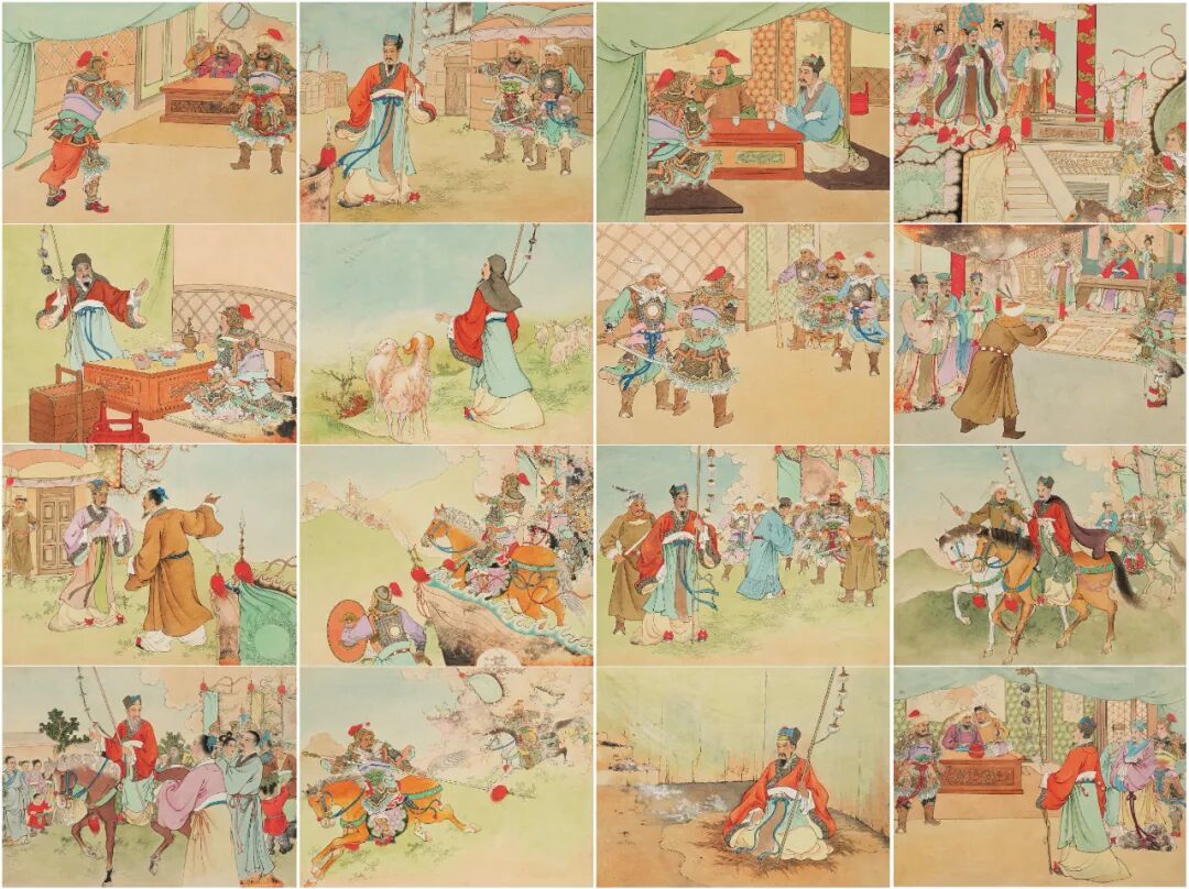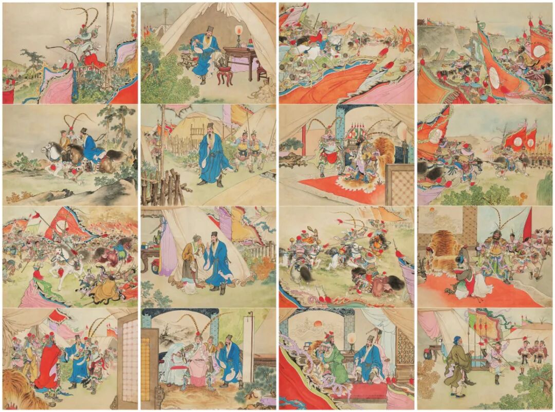 刘汉宗(1912-2001)《双枪将陆文龙》年画四条屏原稿十六帧(全)