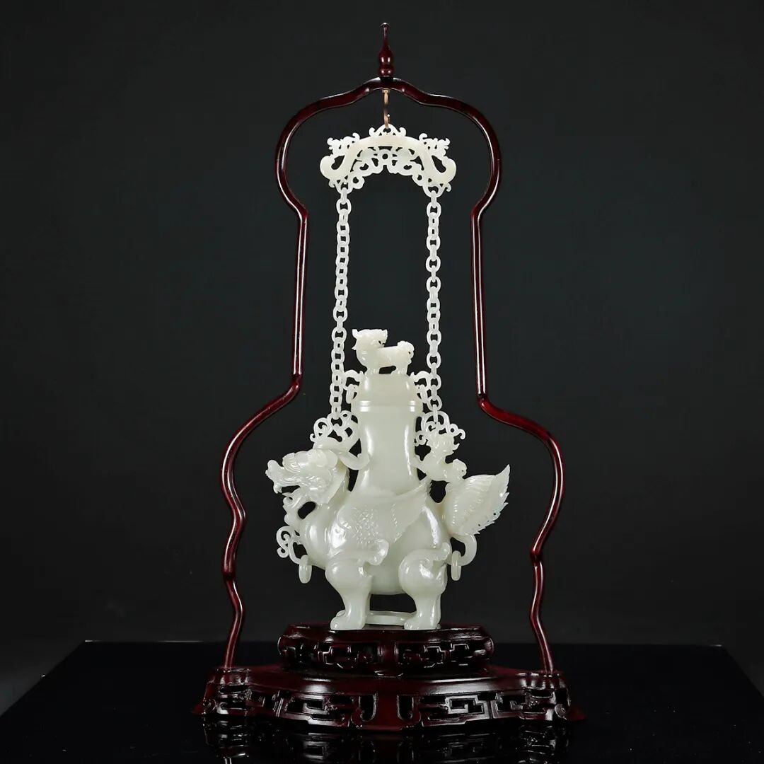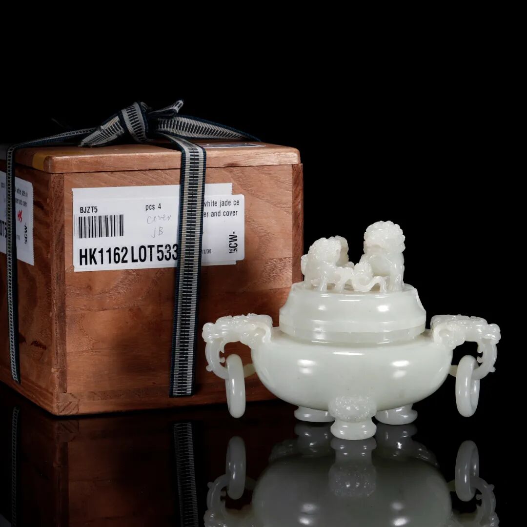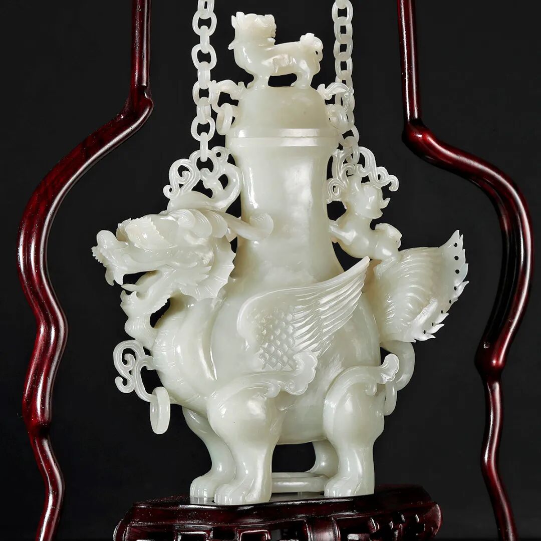 清·白玉兽钮活环链条瓶(苏富比香港)