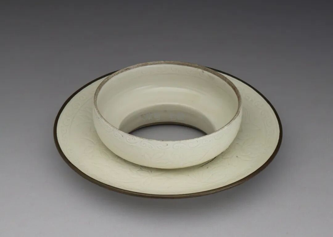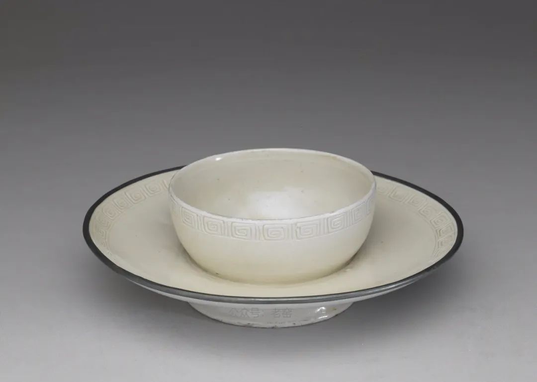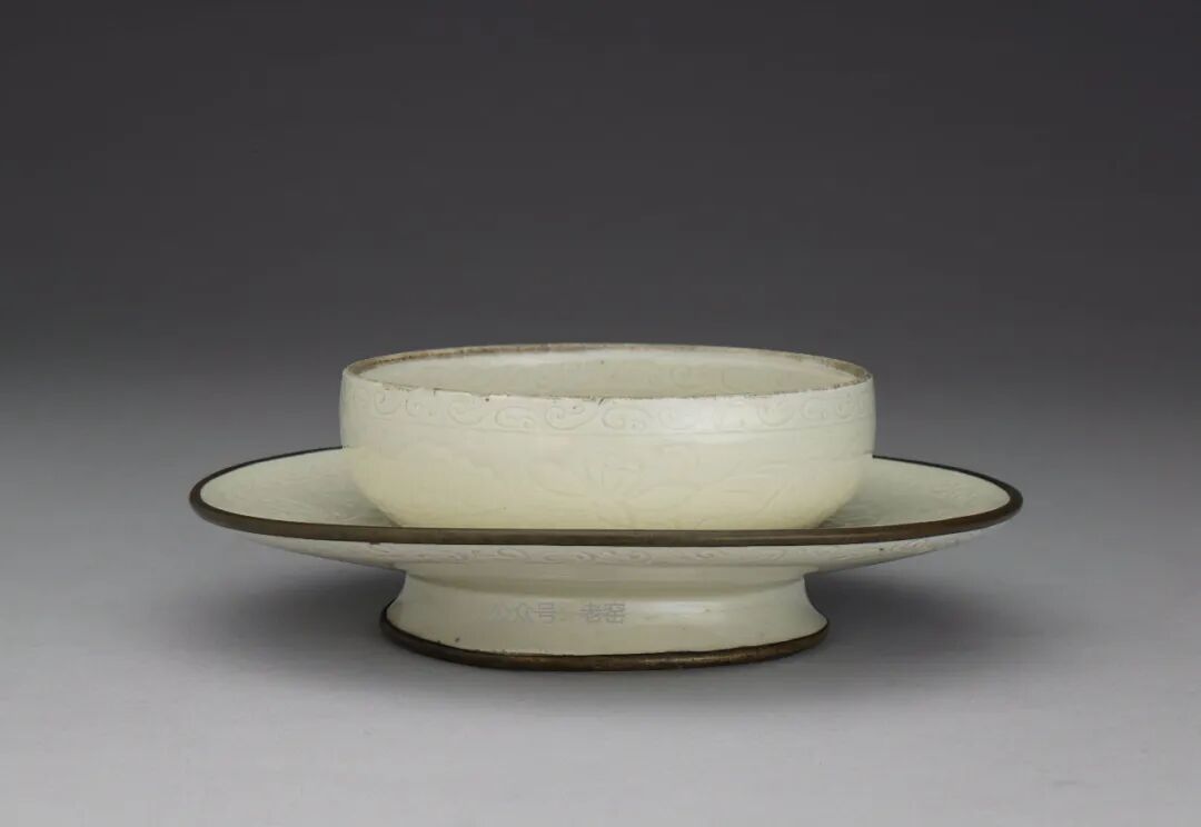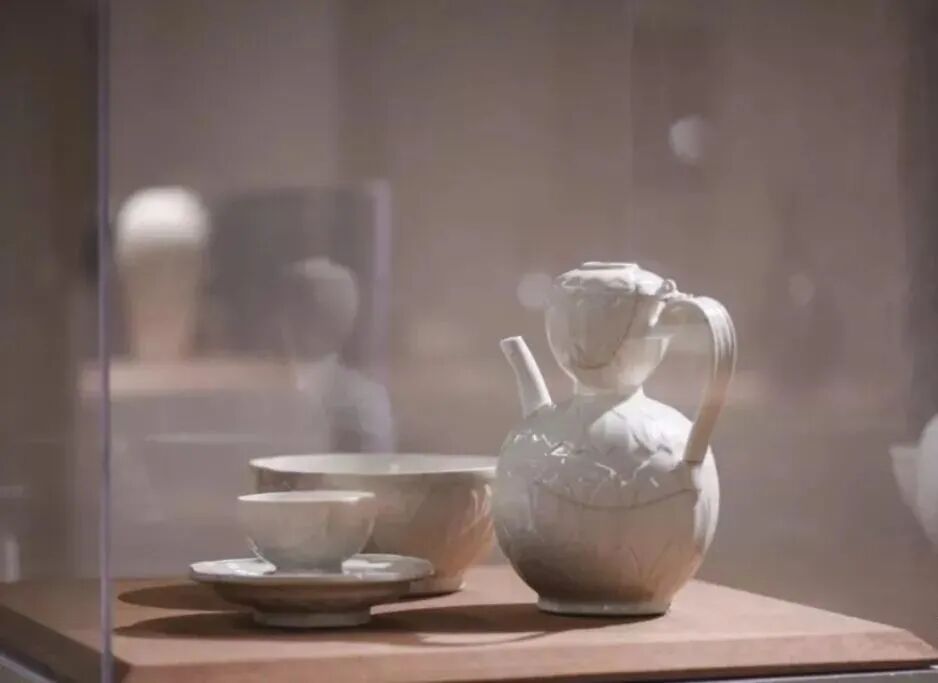 北宋 白瓷刻莲葫芦式执壶、刻莲团凤纹温碗及刻莲台盏(“官”字款)