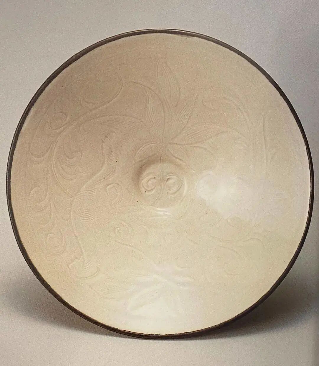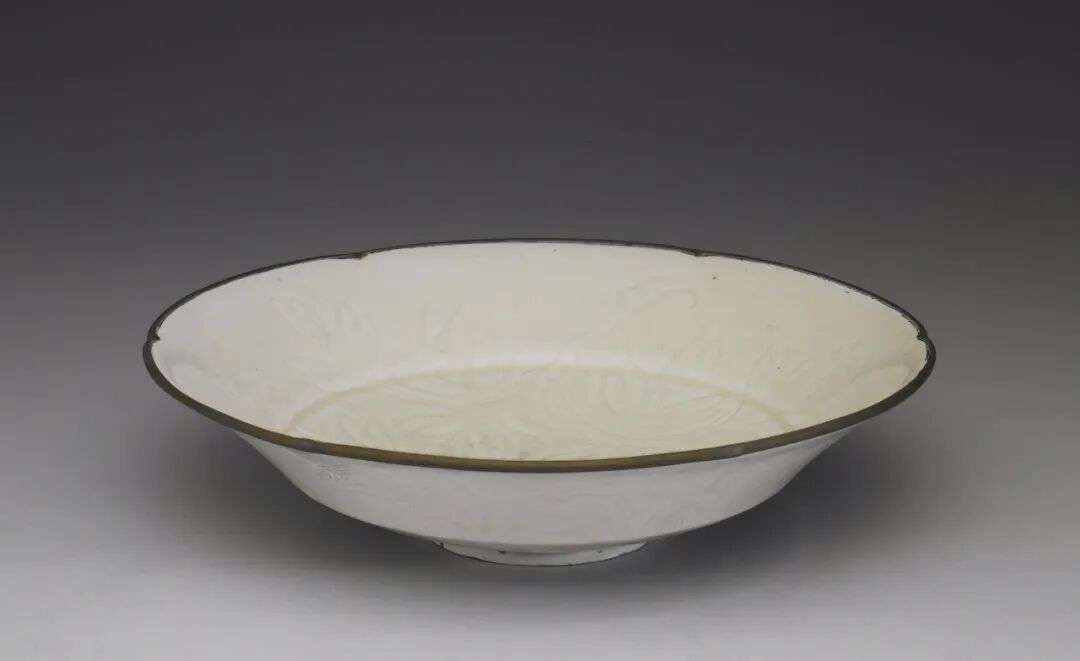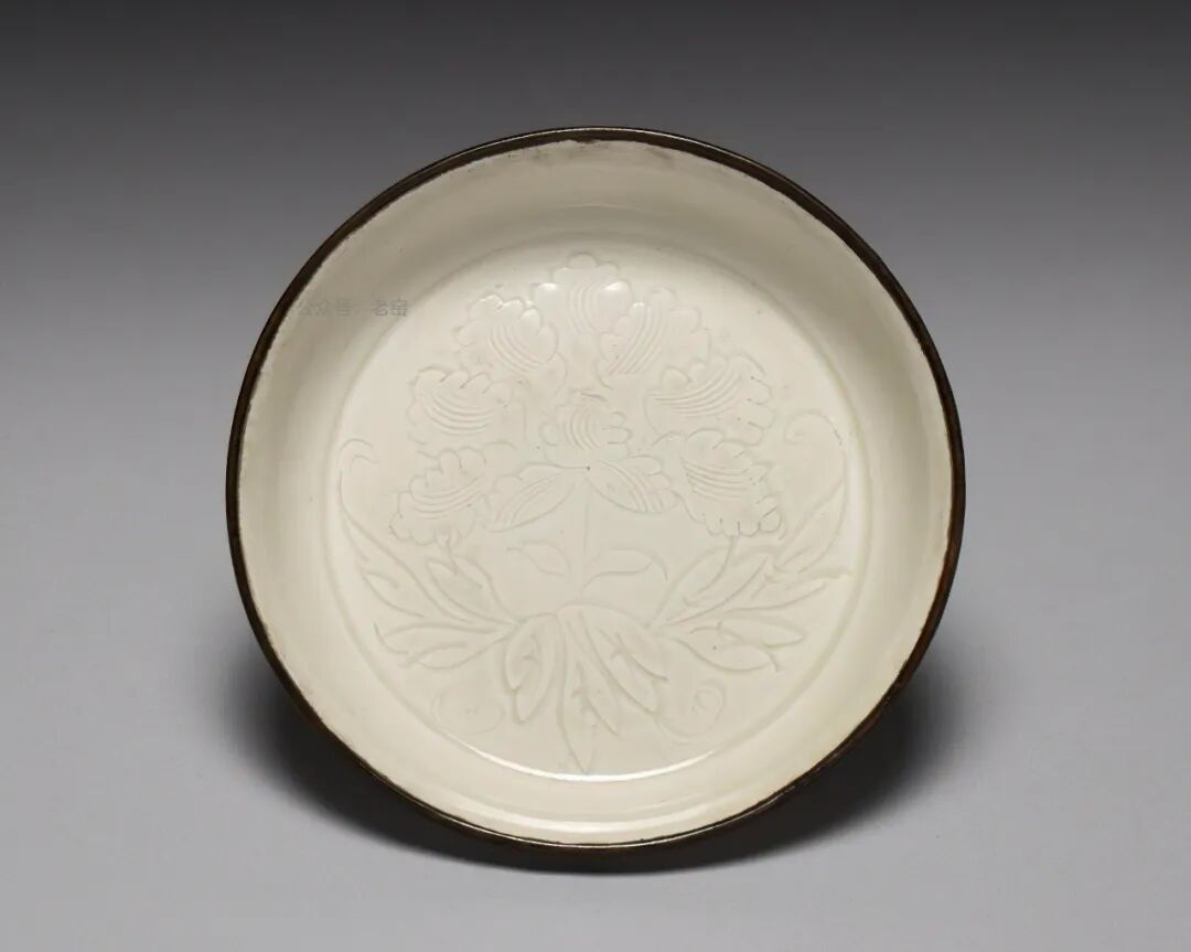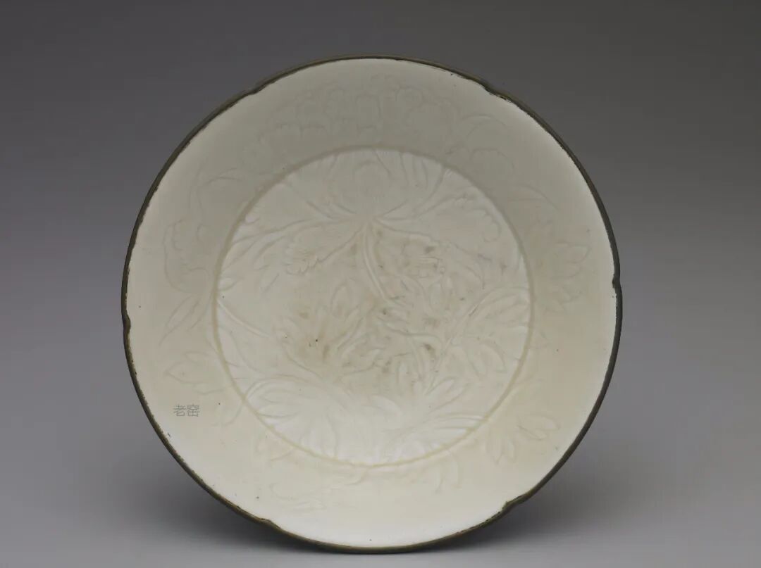 北宋-金 定窑白瓷刻花牡丹纹折腰盘