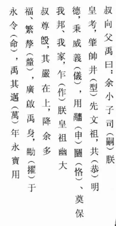 按:此器銘文全篇是叔向父禹的祝願辭,謂其要繼承皇考的事業,要以文祖為表率,謹慎奉行光明之德,保持威儀和禮容。來保定邦家,為皇祖幽大叔作此簋。與此簋同厲王時期的還有一“禹鼎”。
