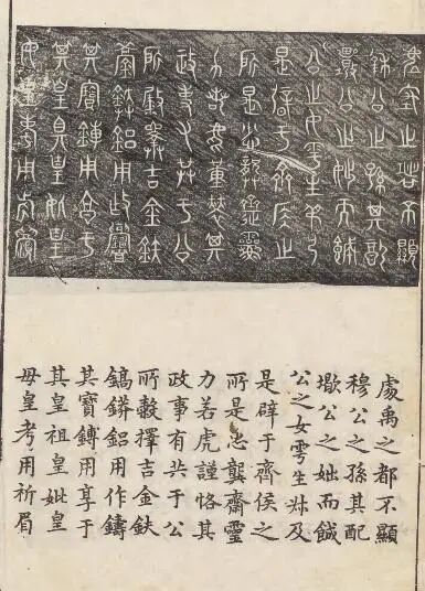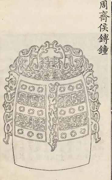 “齊侯镈鐘”是“齊侯镈”和“齊侯鐘”的總稱,又稱“叔夷镈”和“叔夷鐘”,春秋晚期齊國青銅器。據宋趙明誠《金石錄》卷十三“齊鐘銘”條記載:“宣和五年(1123年),青州臨淄縣民於齊故城耕地,得古器物數十種,期間鐘十枚,有款識,尤奇,最多者幾五百字,今世所見鐘鼎銘文之多,未有踰此者”。下圖收錄的是《重修宣和博古圖》中齊侯镈一件。