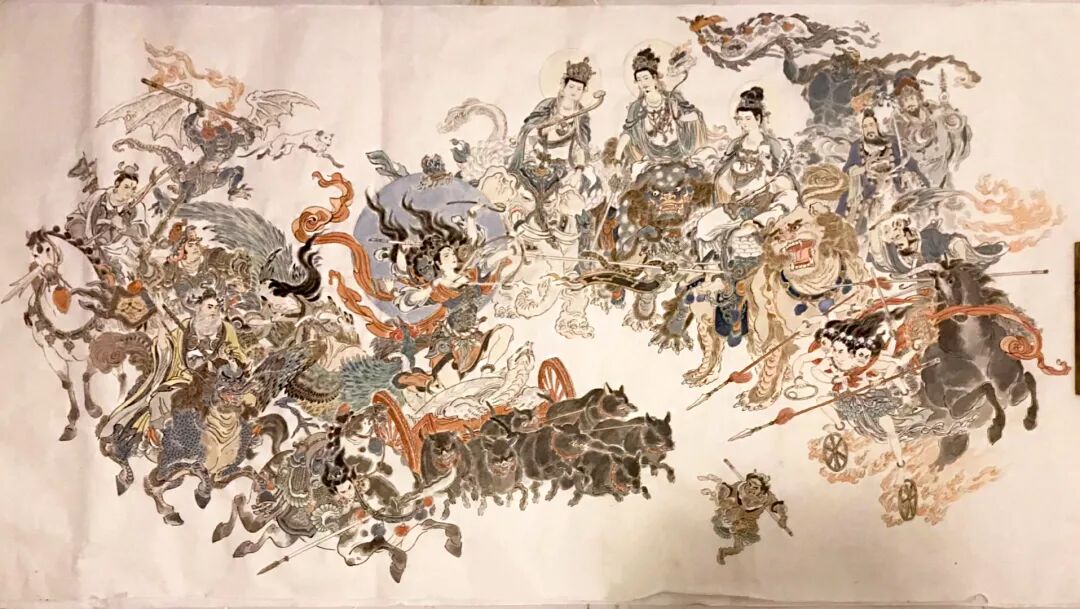 我首次知道师父的名声是通过上世纪九十年代电视剧《水浒传》的热播,当时还在读小学的我便被片尾的水浒造像深深吸引,心生仰慕之情,但却从未想到过会投其门下,因为觉得能画出这样水准作品的大师离我的生活太过遥远,以至之后常与朋友们唏嘘感叹:有生之年一大夙愿便是拜会师父。幸甚,天遂人愿,我最终还是投其门下。虽说入门较其他人最为顺利,但其中波折也是弄人造化。